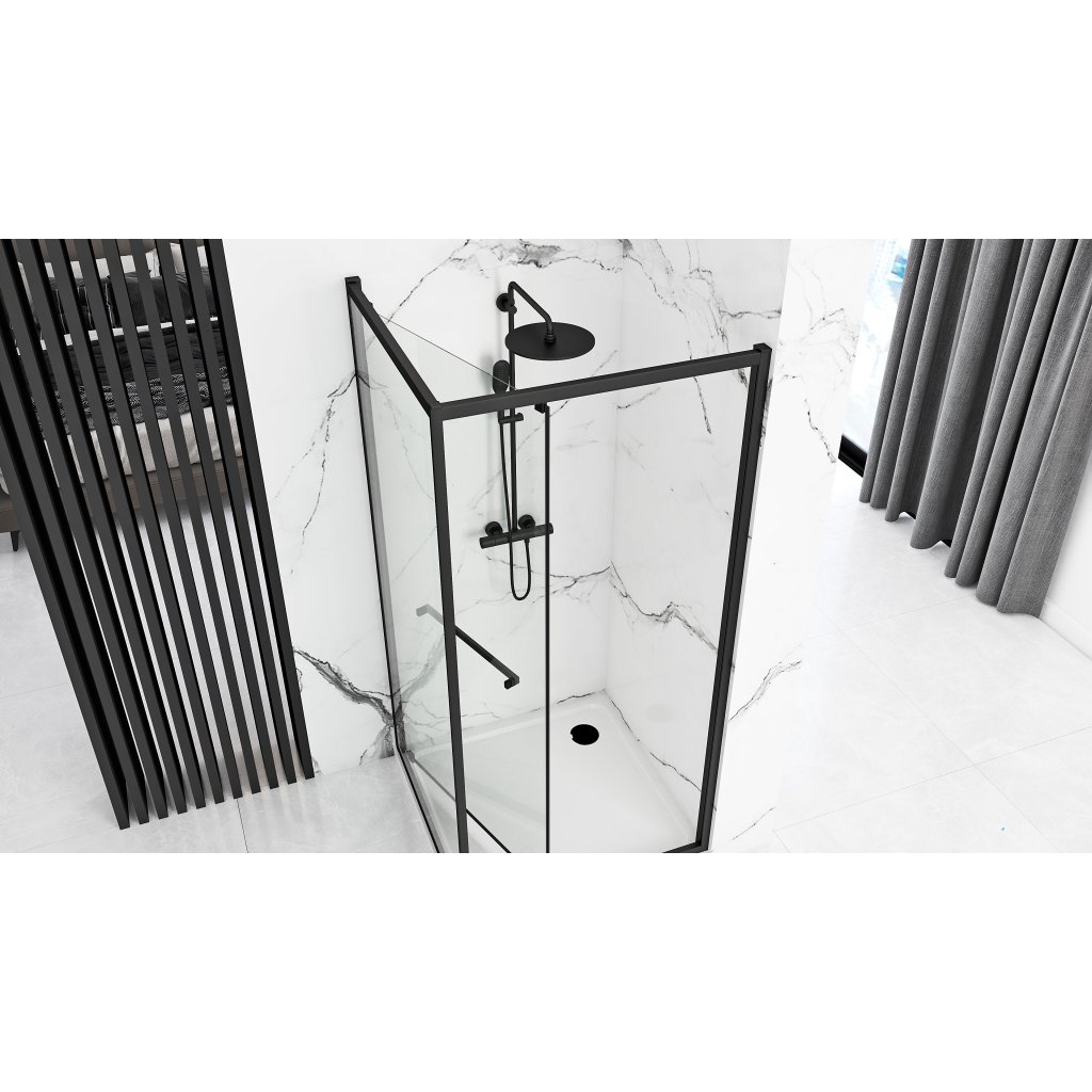 Sprchový kout REA SPACE IN 80/dveře x 100/zástěna cm, černý/transparent + vanička Savoy bílá