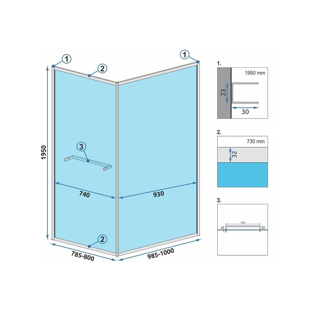 | Instalační rozměry - zástěna (mm): | 985-1000 |