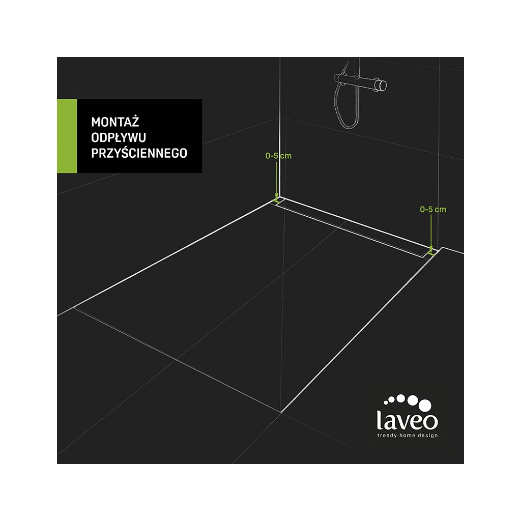 - Instalace ke stěně - žlab je určen pro podlahovou montáž ke stěně