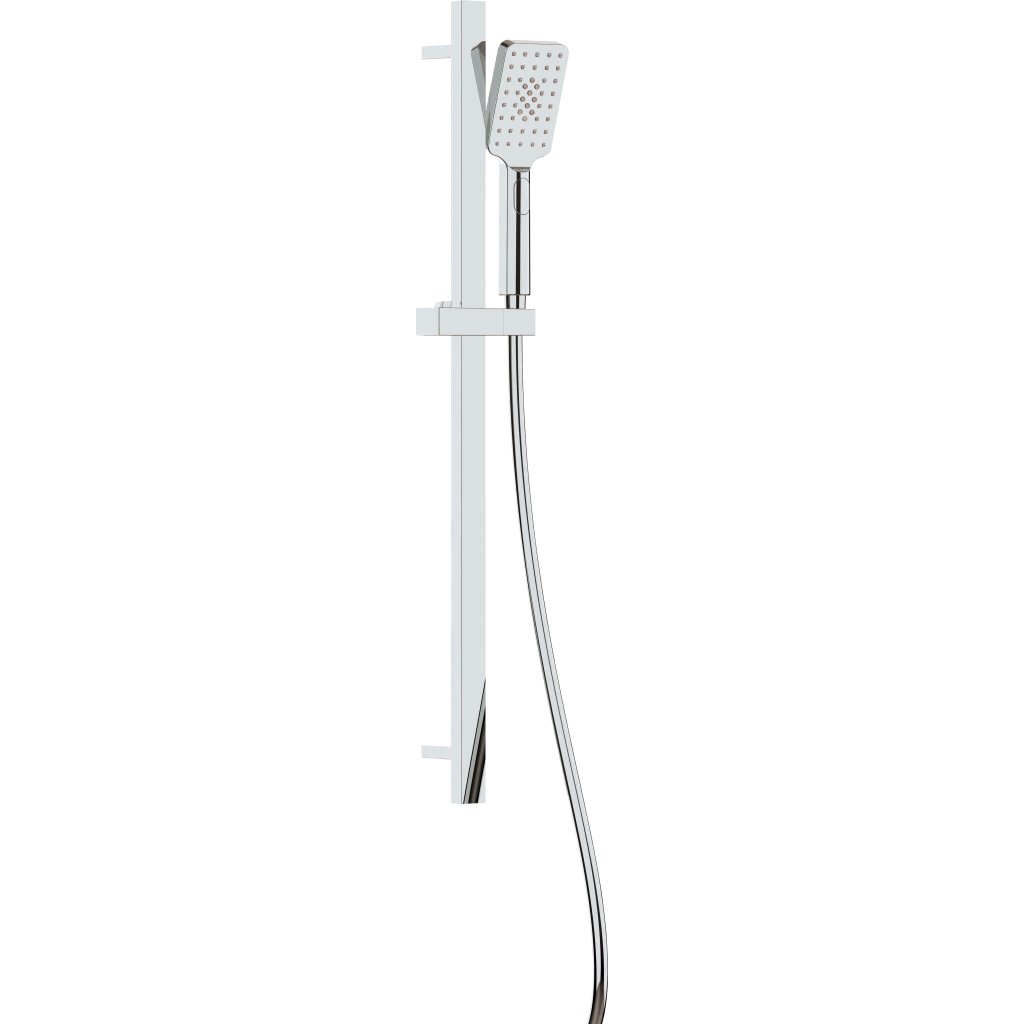 Kompletní sprchový set je navržen v moderním stylu a bude ozdobou každé koupelny. Díky jednoduchým, klasickým liniím a estetickému provedení se bezvadně hodí do tradičních, nebo minimalistických interiérů. Použité materiály, hladké linie a inovativní systém proti usazeninám Anti-Calc usnadňují čištění. Díky rovnoměrně rozmístěným tryskám si mohou koupající volit mezi třemi režimy sprchy. Standardní režim je dešťová sprcha, ale je možné přepnout i na jiné režimy. Výsledkem je nižší spotřeba vody při stejném uživatelském komfortu. Součástí balení je elegantní tyč s výškově nastavitelným držákem růžice ruční sprchy.