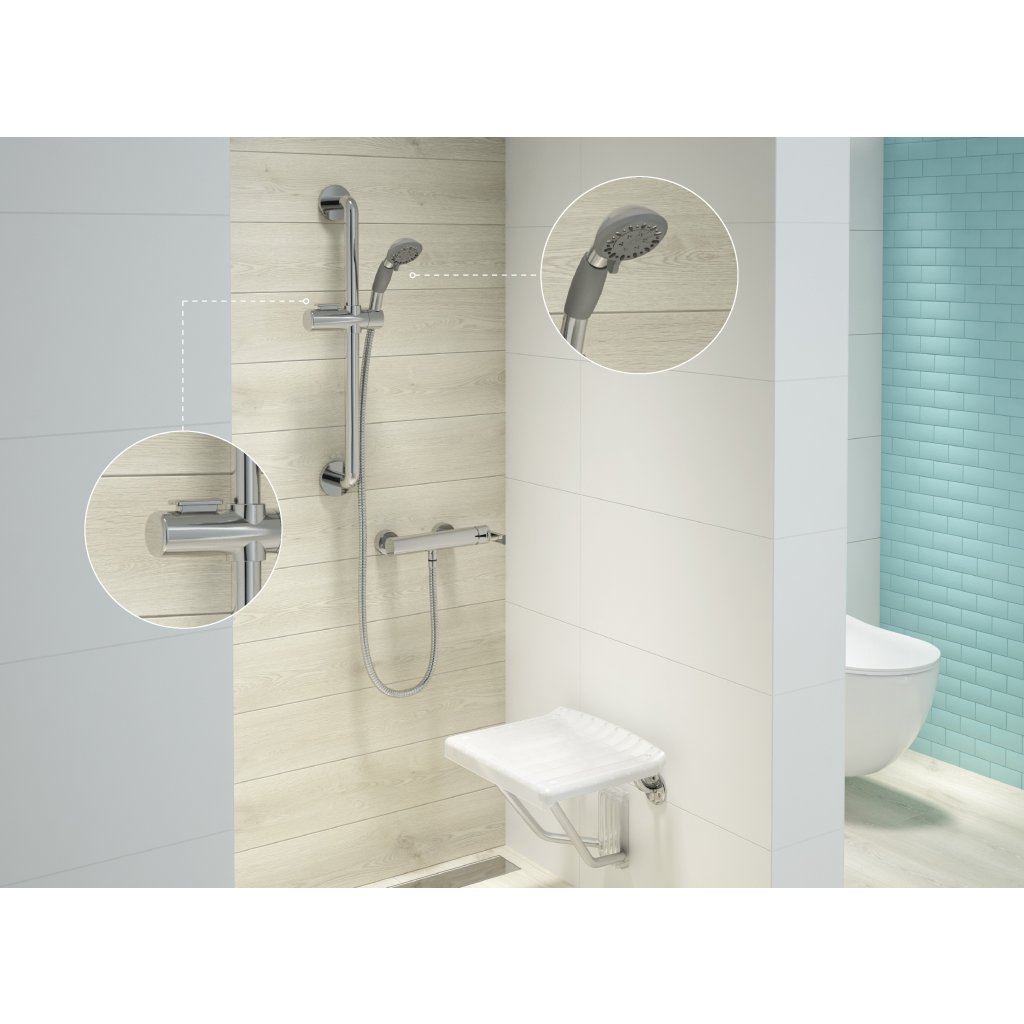 Kompletní sprchový set byl vytvořen v moderním stylu a bude ozdobou každé koupelny. Díky jednoduchým, klasickým liniím a estetickému provedení se skvěle hodí do tradičních, skandinávských nebo minimalistických interiérů. Použité materiály, nedostatek zákoutí a inovativní systém proti usazeninám Anti-Calc usnadňují čištění. Díky rovnoměrně rozmístěným tryskám má koupající se osoba možnost volby mezi třemi režimy provozu. Standardní tryska je dešťová, ale můžete přepnout i na jiné režimy. Výsledkem je nižší spotřeba vody při stejném uživatelském komfortu. Proto lze nástěnný držák označit jako 2 v 1. Snadnou instalací jednoho prvku získáte dvě funkce a více místa v místnosti.Víceúčelový produkt, který je více než jen nástěnné madlo