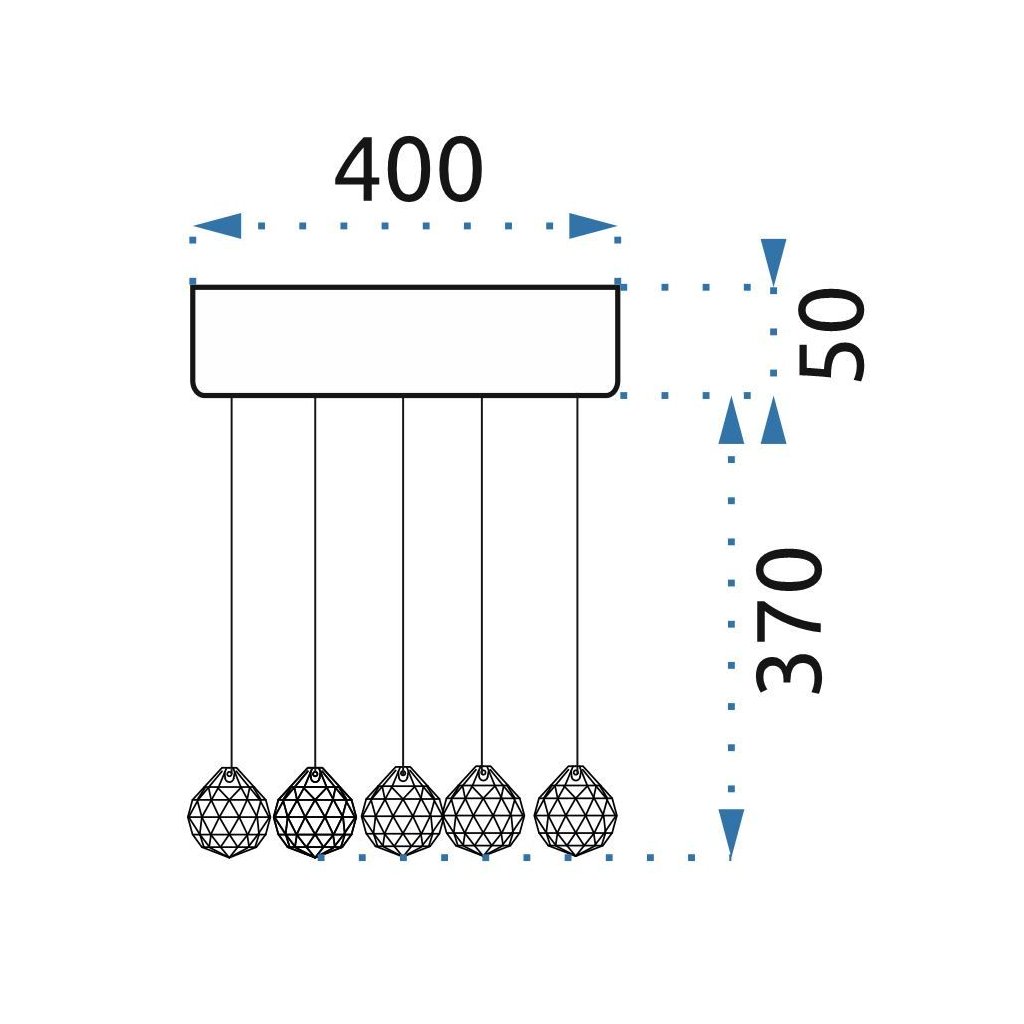 Plafón byl vyroben z vysoce kvalitního kovu odolného proti poškrábání nebo mechanickému poškození.Charakter a elegantní nádech dodávají krystaly rozmístěné téměř po celém povrchu lampy.