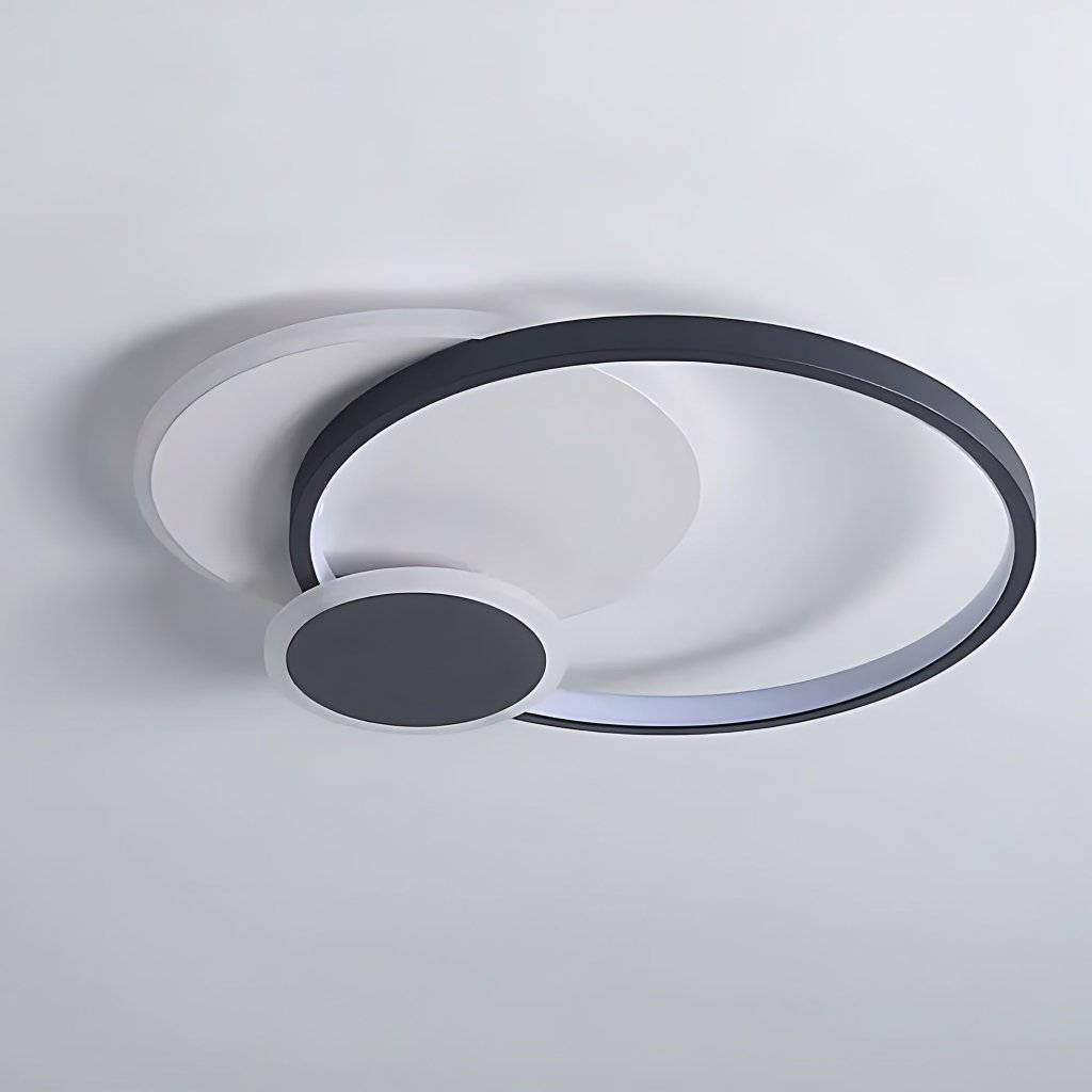 Moderní stropní LED svítidlo je perfektní volbou pro každého, kdo hledá kombinaci výrazného designu a pokročilých technologií. Svítidlo tvořené třemi propojenými prstenci vypadá velmi esteticky a díky kvalitnímu zpracování z kovu a plastu zaručuje dlouhou životnost. Černá matná povrchová úprava dodává celku moderní, lehce industriální charakter, který skvěle doplní minimalistické i loftové interiéry.