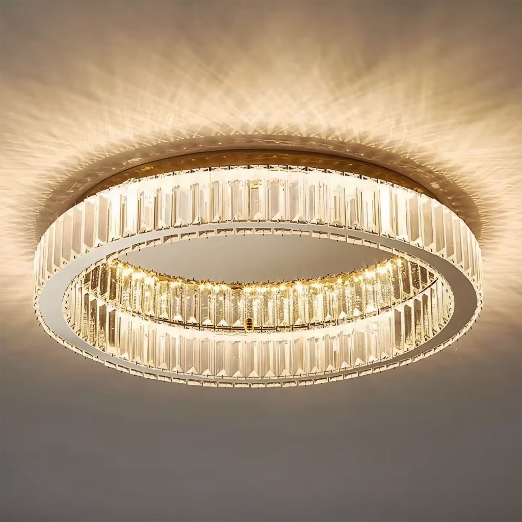 Křišťálové osvětlení ve zlatém, kartáčovaném provedení je elegantním dekorativním prvkem, který zaujme svou formou i precizním zpracováním. Jeho kulatá konstrukce s kovovým rámem ve zlaté barvě dokonale ladí s křišťálovými detaily a vytváří efektní osvětlení plné lesku. Světlo pronikající skrze množství křišťálových prvků se jemně rozptyluje v prostoru a dodává interiéru výjimečný, luxusní nádech.