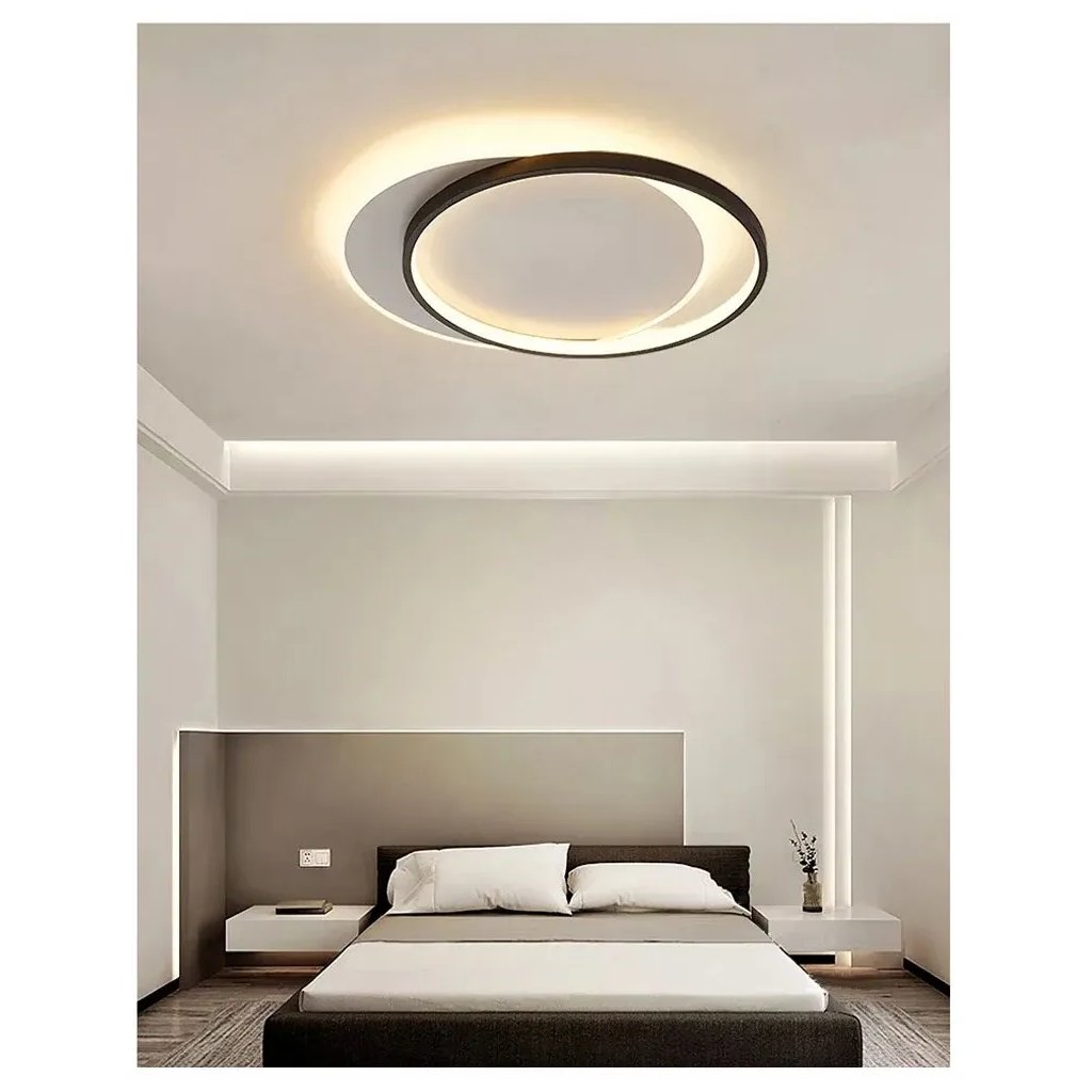 Stropní osvětlení ve tvaru dvou kruhů s integrovaným LED osvětlením představuje moderní doplněk pro každý interiér. Vyrobené z hliníku a silikonu, vyzařuje příjemné teplé světlo o teplotě 3000 K a výkonu 30 W. Elegantní design dokonale ladí s různými styly zařízení a dodá prostoru jemný nádech moderní elegance.