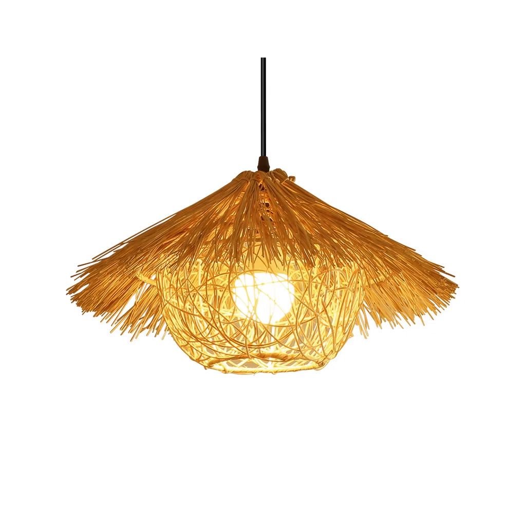 Lampa je vyrobena z bambusových lamel, zatímco rámeček je kovový.