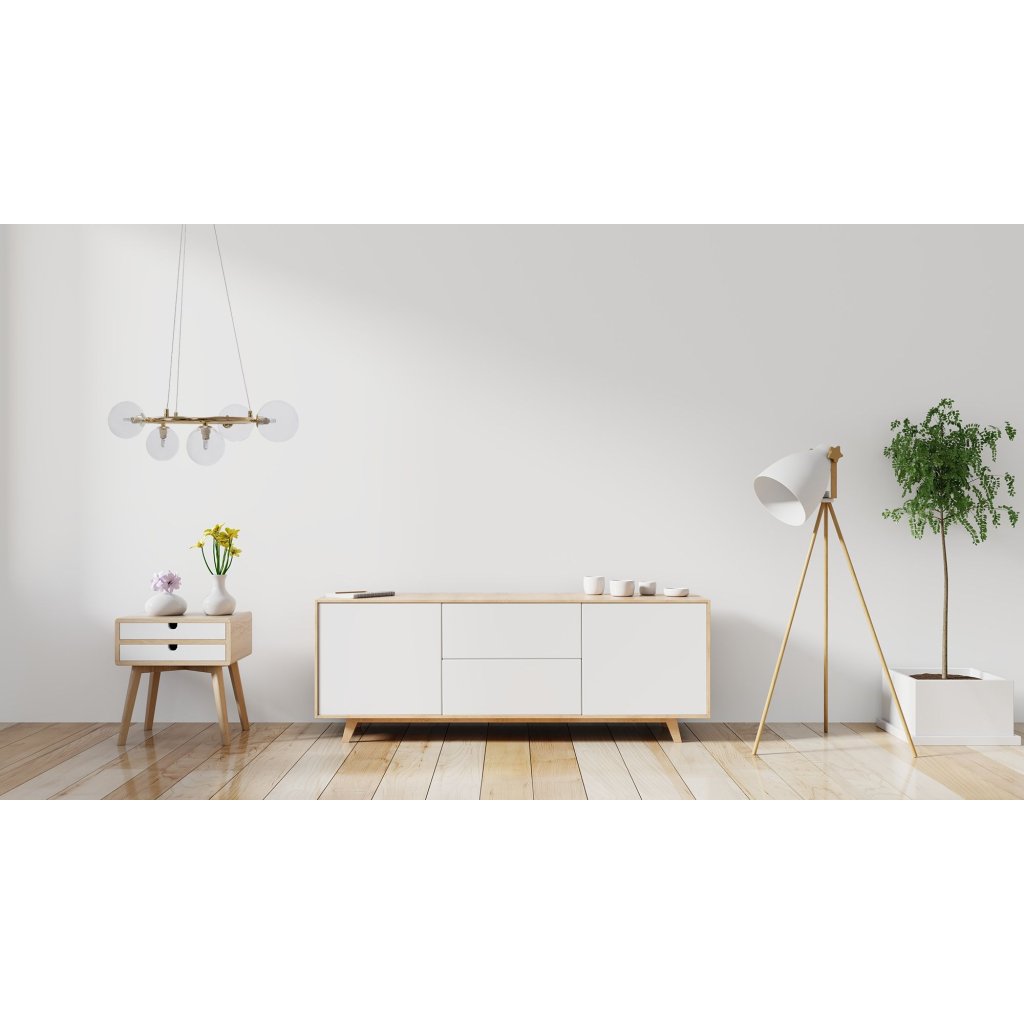 Lampa má až 5 světelných bodů, které jsou připevněny ke kovovým ramenům ve tvaru půlkruhů. Díky tomuto řešení koule dokonale rozptylují světlo po celé místnosti.