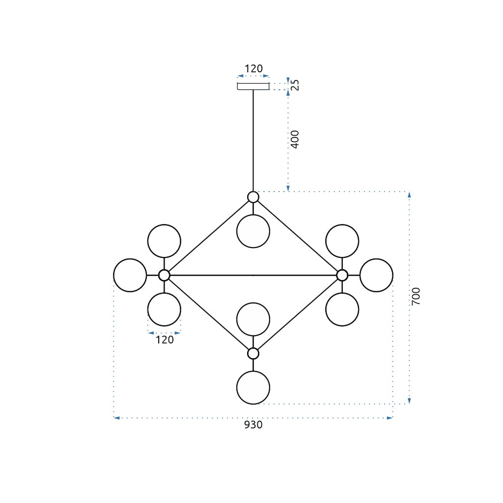 Představená lampa je jistě odvážnou volbou – není těžké si všimnout, že náš výrobek na sebe okamžitě upozorní. To vše díky mimořádně mnoha ramenům zakončeným závitem pro žárovku, což znamená, že lampa může napájet až 15 světelných bodů!Navzdory počtu žárovek je design lampy neobvykle prostorný a její jednoduchý tvar ji umožňuje přizpůsobit se jakémukoli uspořádání a účelu v místnosti.