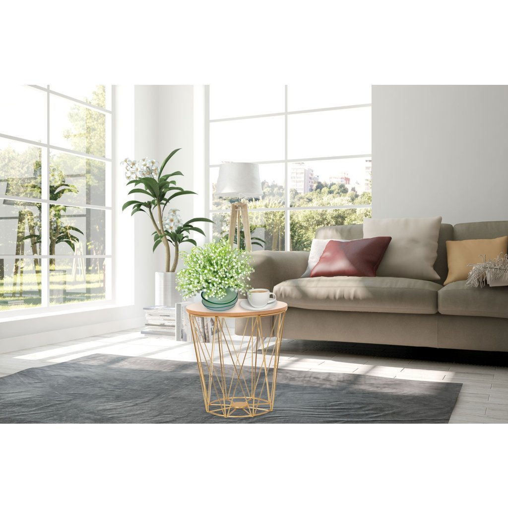 Jak všichni víme, jeden detail může změnit celý interiér, a to je přesně případ produktu, který představujeme.Stůl je navržen podle nejnovějších trendů - zlatá barva, lehce loftový styl, potah imitující dřevo jistě potěší vaše hosty. Ideální nápad na dárek nebo doplněk vašeho interiéru.