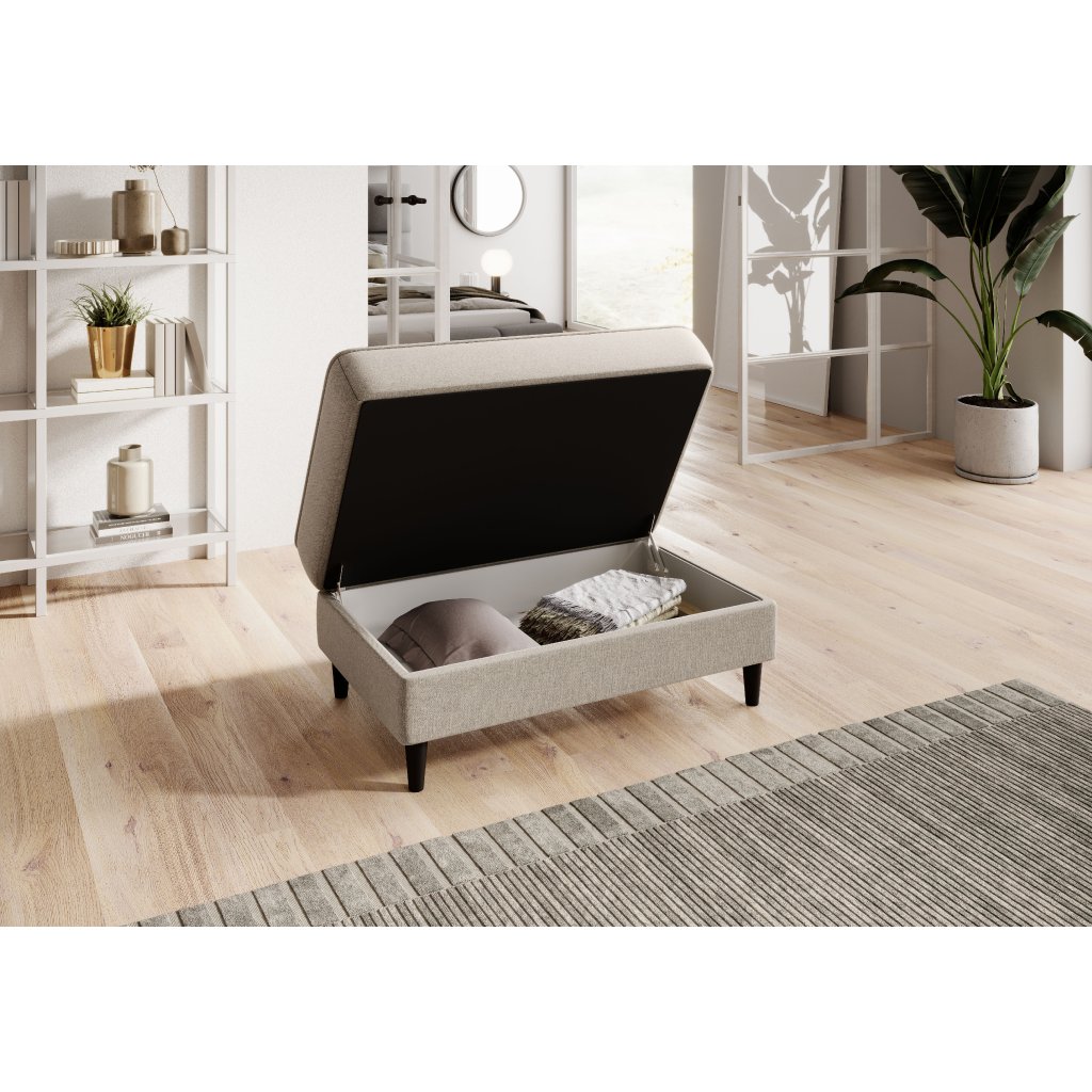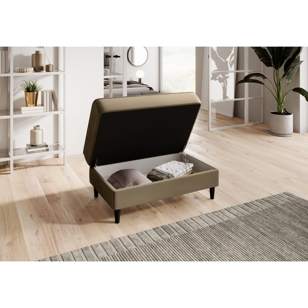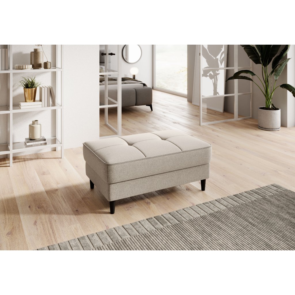 Na výrobu pufu byly použity pouze vysoce kvalitní materiály: vysoce odolná pěna HR, pěna T2130 a vlnitá pružina typu B. Díky těmto komponentům je nabízený výrobek společně velmi odolný. Puf má nohy z masivního dřeva. Ty mu zajišťují dostatečně vysokou stabilitu a dodávají jeho tvaru příjemnou lehkost.