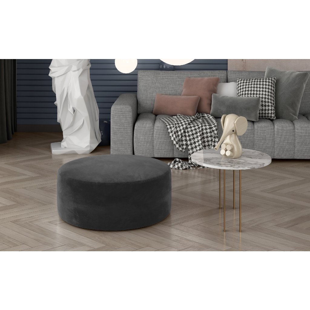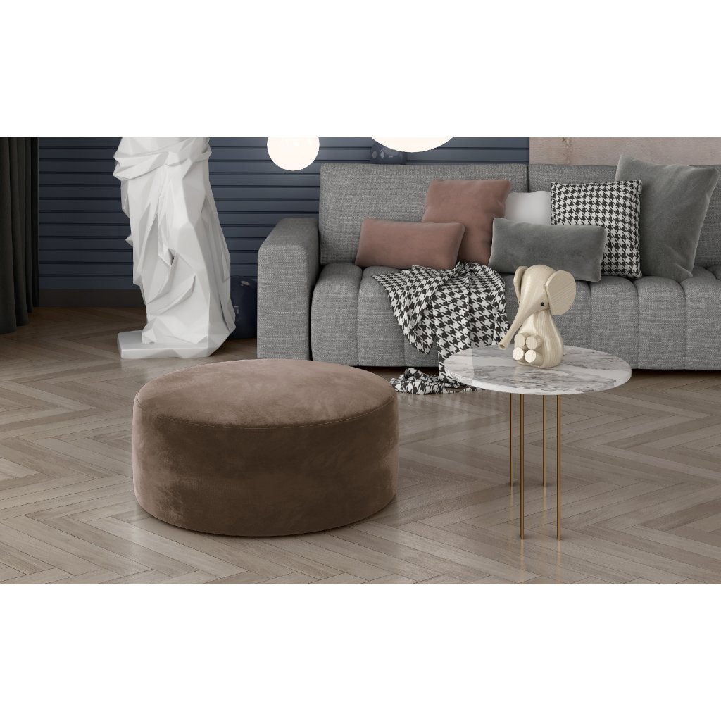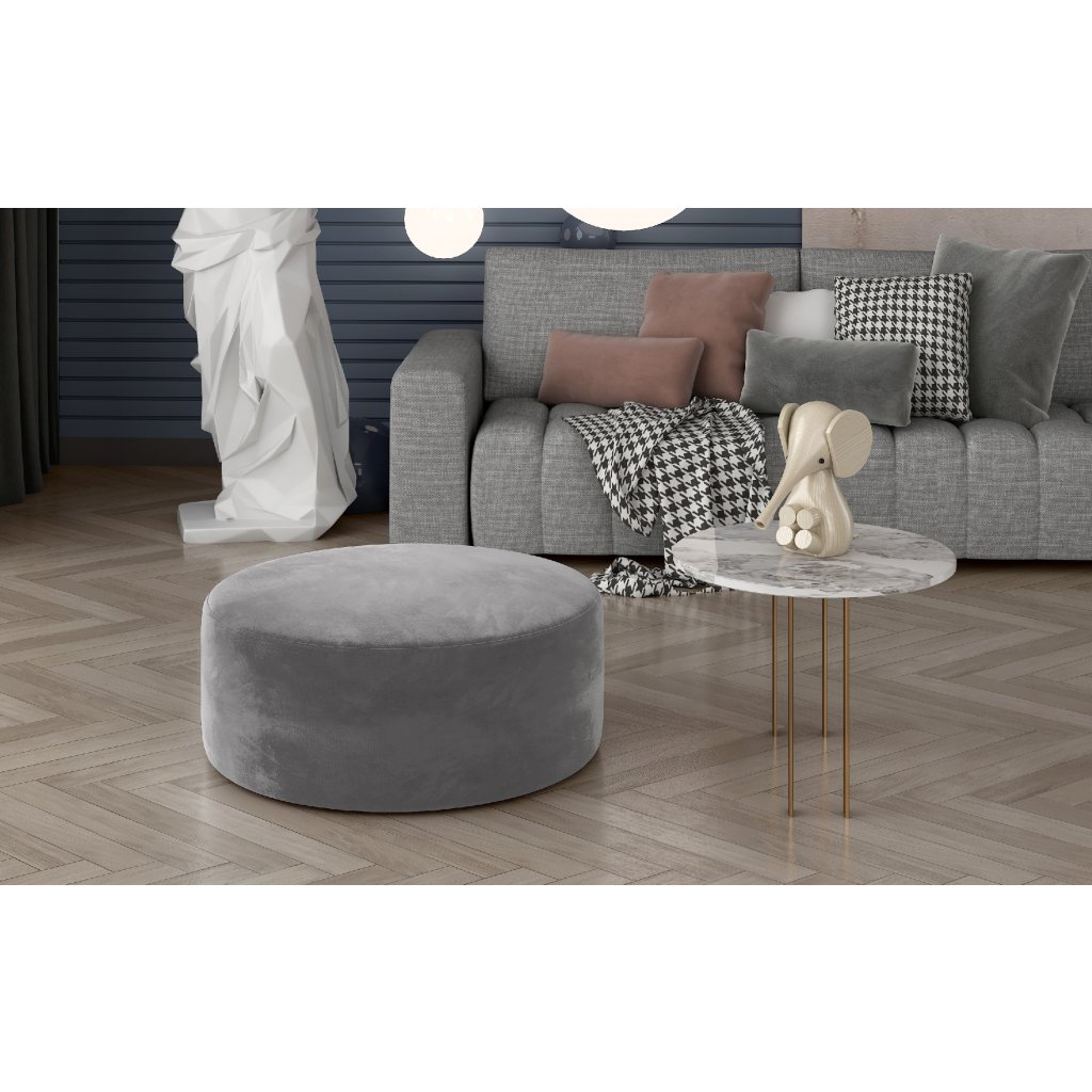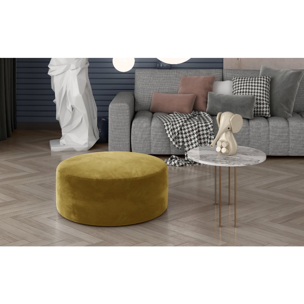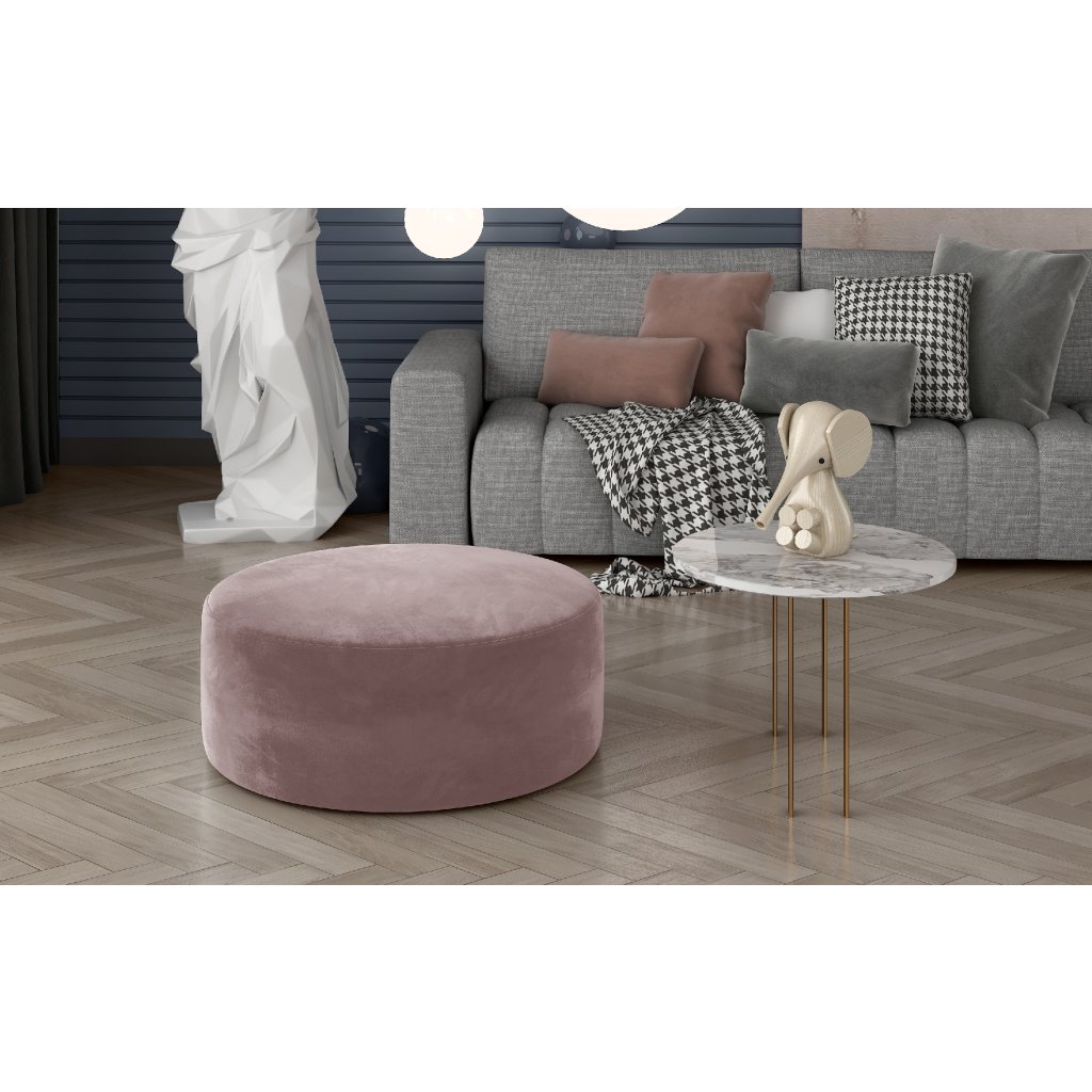 Bero je elegantní kulatý taburet, který dokonale zapadne do interiéru každé domácnosti. Šířka je 75 cm a jeho výška 42 cm. Díky svému tvaru a velikosti lze tento multifunkční kus nábytku použít jako stolek nebo podnožku. Na jedné straně může být samostatným kusem interiérového vybavení, na straně druhé může být i jeho doplňkem.Pohodlný a prostorný sedák je vyroben z kvalitní HR pěny, která přispívá k pozitivnímu pocitu měkkosti plynoucímu z používání nábytku. Taburet Bero je k dispozici v široké škále barev látek, což dává možnost doplnit vhodně interiér. Náš taburet je kus nábytku, který Vám vydrží dlouhá léta.
