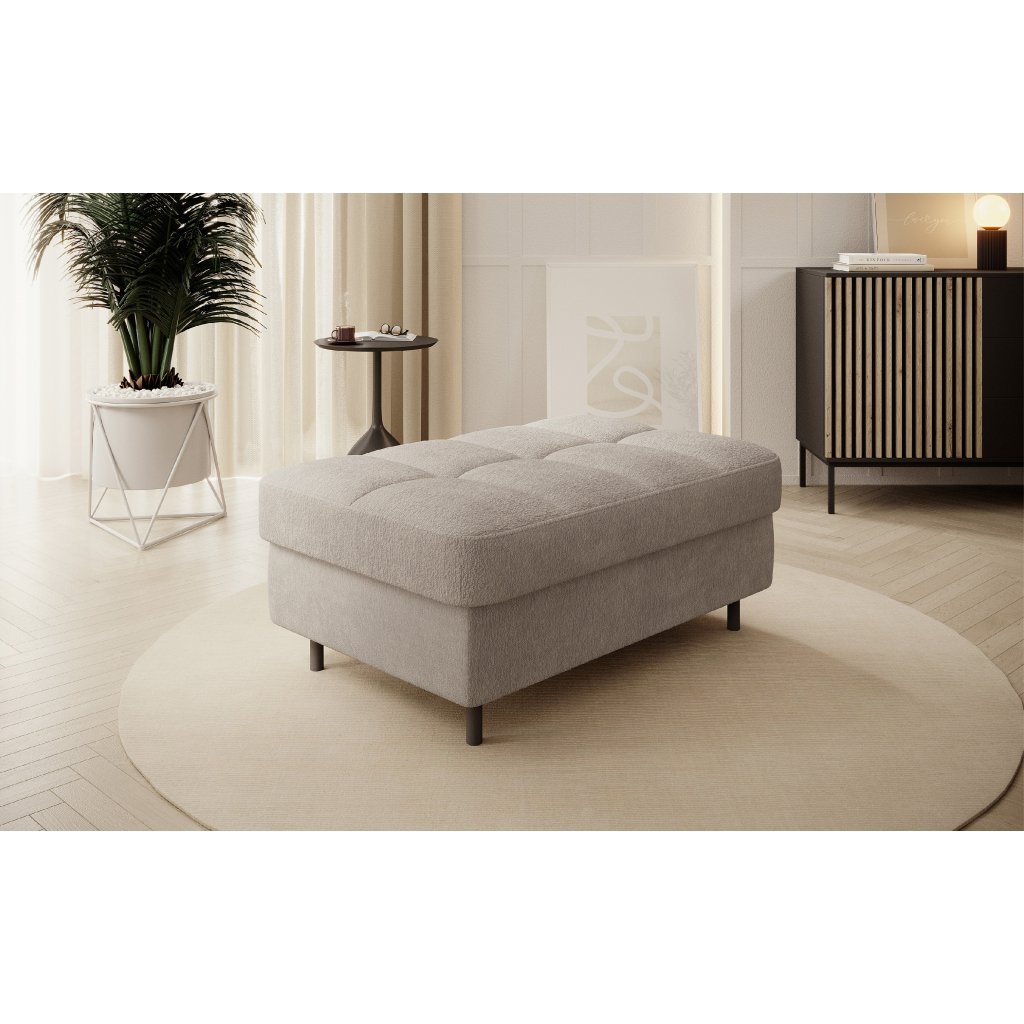 Taburet Gomsi o rozměrech 45 cm (výška) x 72 cm (šířka) x 104 cm (délka) je elegantní a hlavně funkční kus nábytku.Taburet má robustní kovové nohy v černé barvě, které zajišťují stabilitu a dodávají mu moderní nádech.