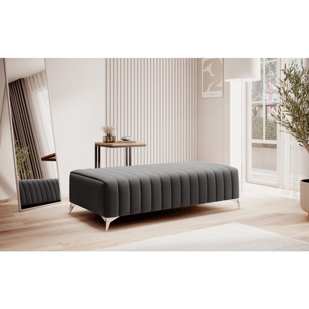Popište svůj interiér stylovým a pohodlným taburetem Laurence. Tento jedinečný taburet v sobě spojuje vynikající design s bezkonkurenčním komfortem, který poskytne chvíle odpočinku a pohodlné sezení. Vlnitá pružina typu B je zárukou odolnosti a stability. Díky ní si taburet zachovává svůj tvar po mnoho let, aniž by podléhal deformaci či pokřivení. Taburet Laurence je vybaven třemi druhy pěny: HR, T3030 a T2130. Tato kombinace zaručuje dokonalou oporu pro vaše tělo a zároveň poskytuje měkkost, která vám umožní plně relaxovat.S rozměry 64 cm x 132 cm x 36 cm vám tento taburet poskytne prostor pro pohodlné sezení nebo ležení v závislosti na Vašich potřebách. Nohy z chromované oceli o výšce 9 cm dodávají stabilitu a eleganci a podtrhují jedinečný charakter výrobku. Maximální nosnost taburetu Laurence je až 90 kg, což znamená, že na něm můžete pohodlně sedět bez obav o jeho odolnost. Jeho celková hmotnost je 39 kg, což dále potvrzuje pevnost konstrukce.