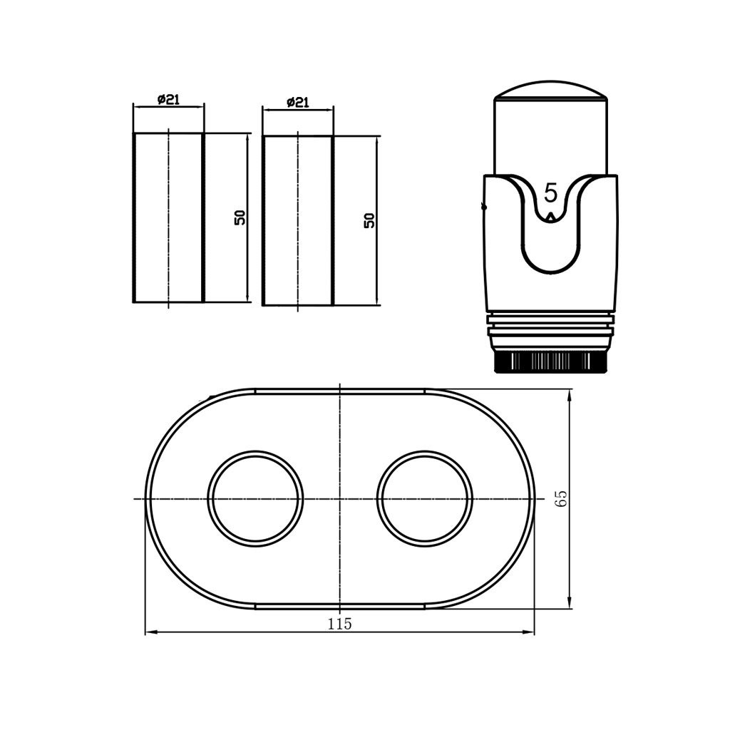 - Termostatický dvojitý ventil - PRAVÝ (přívod teplé vody do radiátoru je na straně termostatické hlavice). Termostatická hlavice je orientována doprava. Konstrukčně ventil umožňuje připojení jak ze zdi tak i z podlahy.