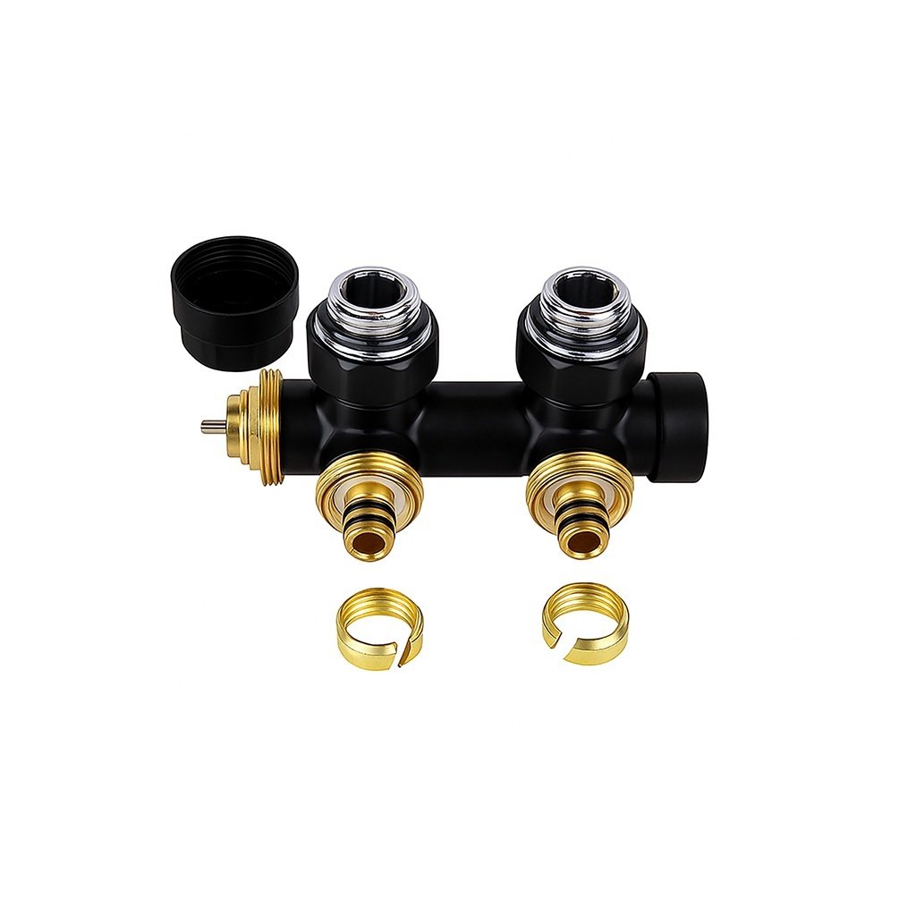Termostatický dvojitý ventil úhlový HYD-ZT-BL-2 - pravý, černý