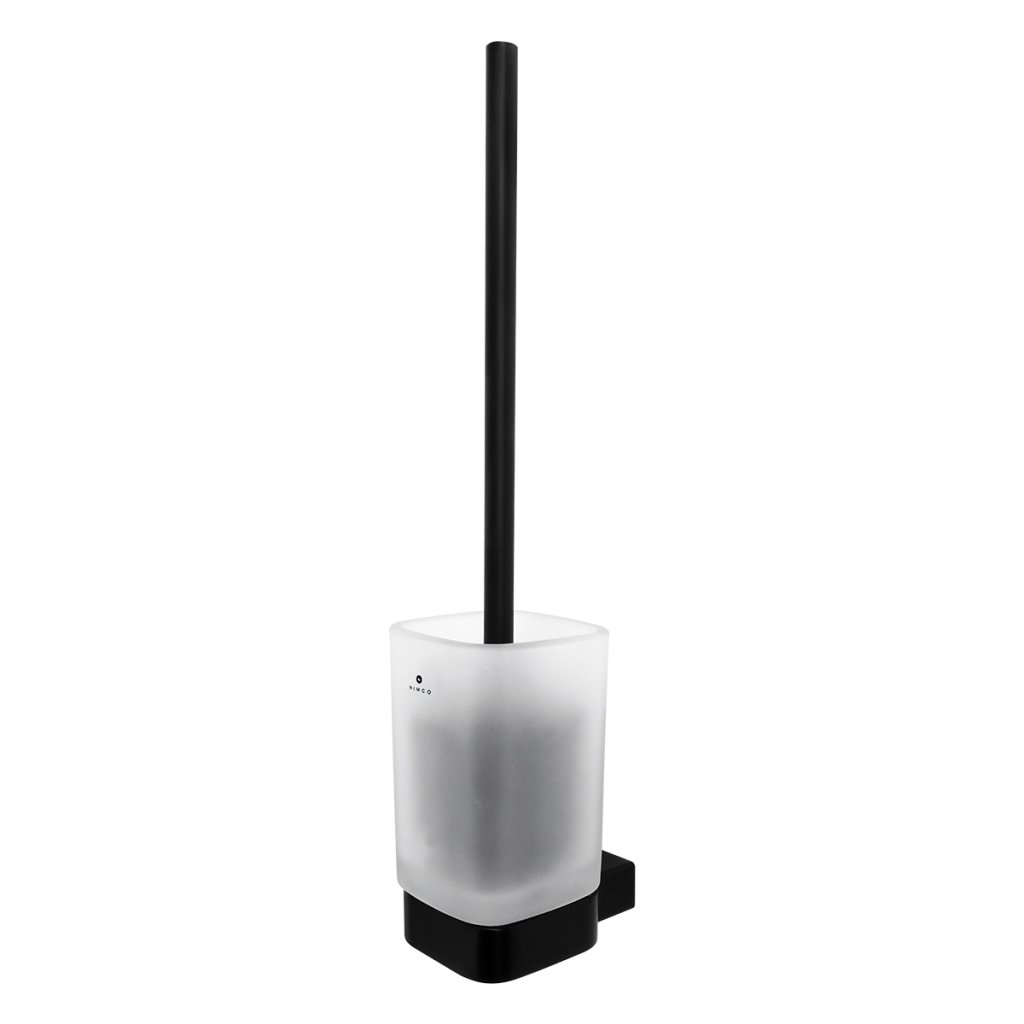 WC štětka černá s držákem na zeď, nízká hranatá nádoba matné sklo je skvělým doplňkem k WC. Nadčasový svět ve vaší koupelně? Toho lze docílit s koupelnovými doplňky KIBO. Tato série nabízí velké množství tvarů, rozměrů, materiálů a barev. Skleněné nádobky oblých i kulatých tvarů jsou toho důkazem. Buďte originální s doplňky KIBO. K čištění povrchu se používá hadřík z mikrovlákna namočený v mýdlové vodě nebo octovém roztoku. Po umytí se vysuší povrch jemným hadříkem. Použití bělících, dezinfekčních, alkalických, silně koncentrovaných čistících prostředků obsahující silná činidla nebo použití tekutých písků by mohlo povrch poškodit!Toaletní WC kartáč bude koupelně slušet mnohem více, pokud zvolíte i další doplňky série Kibo černá z nabídky koupelnových a WC doplňků NIMCO.