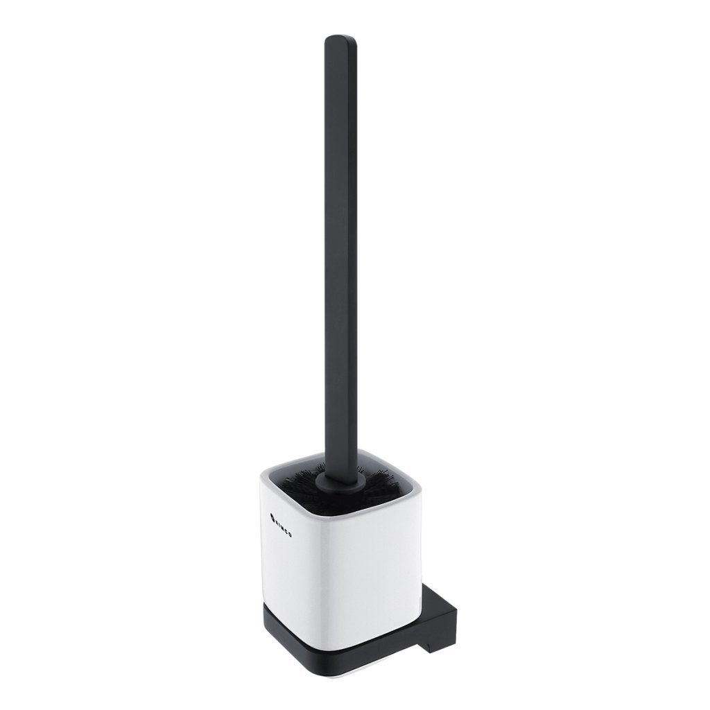 WC štětka s držákem na zeď černá nízká nádoba keramická, hranatá rukojeť je skvělým doplňkem k WC.Toaletní WC kartáč s hranatou rukojetí bude koupelně slušet mnohem více, pokud zvolíte i další doplňky série Maya černá z nabídky koupelnových a WC doplňků NIMCO.