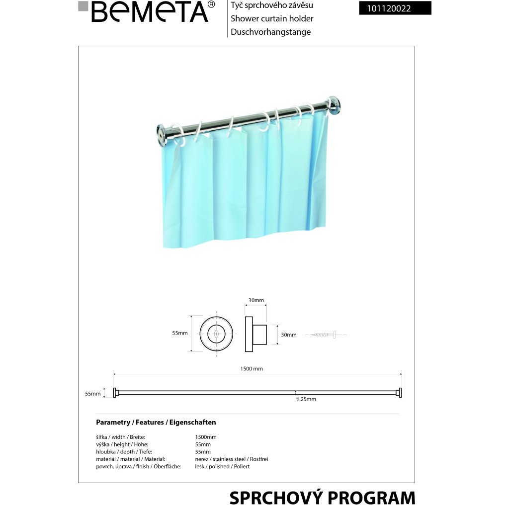Tyč sprchového závěsu, 1500 mm, nerez, lesk - 101120022