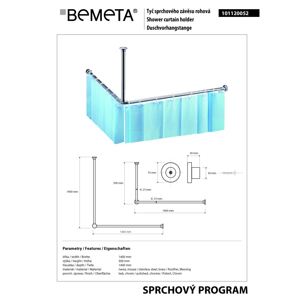 Tyč sprchového závěsu, 1400 x 1400 mm, rohová, nerez, lesk - 101120052