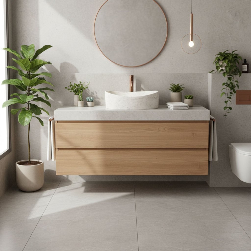Umyvadlo je vyrobeno z vysoce kvalitního umělého kamene (Artificial Stone). Tento kompozitní materiál je mimořádně pevný a odolný vůči mechanickému poškození, poškrábání i chemickým vlivům. Na rozdíl od skutečného porézního kamene, který je náročný na údržbu, nabízí tento model dlouhou životnost bez starostí.