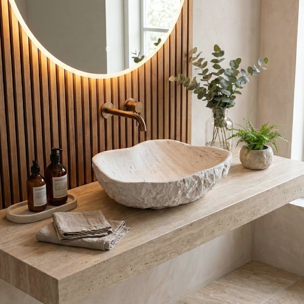 Přeneste do své koupelny dotek přírody a harmonie. Umyvadlo na desku Rea Isla Shiro není jen sanitárním vybavením, ale skutečným sochařským dílem. Jeho nepravidelný, asymetrický tvar a světlá barevnost imitující pískovec dokonale rozbíjí geometrickou strohost moderních interiérů a skvěle se hodí do koupelen ve stylu Boho či přírodního Spa.
