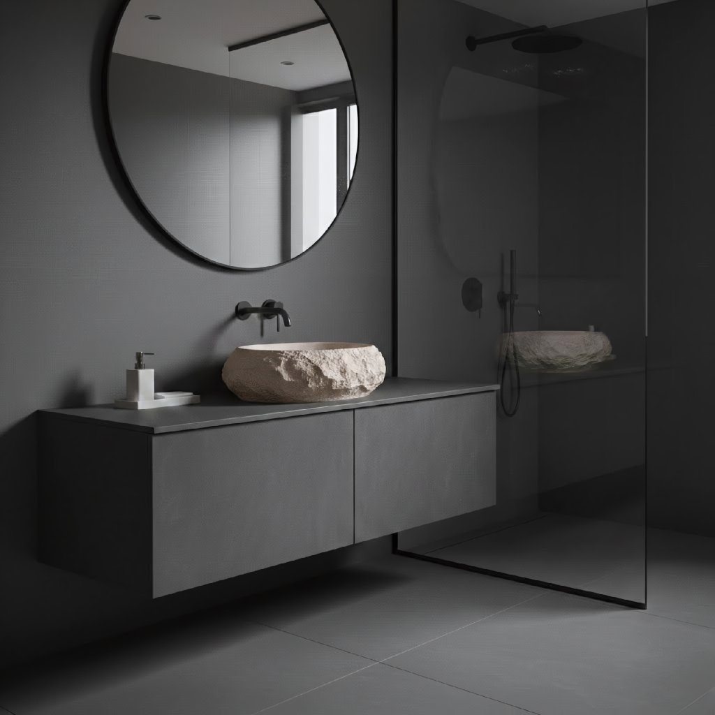 Design umyvadla je postaven na efektním kontrastu povrchů. Zatímco zvenčí působí umyvadlo jako ručně opracovaný kus skály s autentickou texturou, vnitřní prostor mísy je precizně vyleštěný a hladký. To zajišťuje nejen vysoký hygienický standard a snadný odtok vody, ale také velmi snadné čištění, které by u hrubého kamene bylo obtížné.