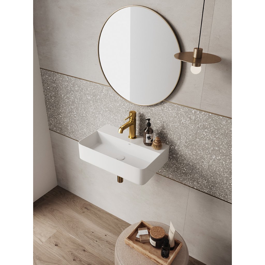 Umyvadlo Kvadrato se skvěle hodí do různých stylů interiérů. Jeho zaoblené hrany dodávají jemný vzhled, který ladí s minimalistickým, moderním i industriálním designem. Rozšířený okraj nabízí místo pro koupelnové doplňky, jako je dávkovač na mýdlo, což z umyvadla dělá nejen estetický, ale i funkční prvek koupelny.