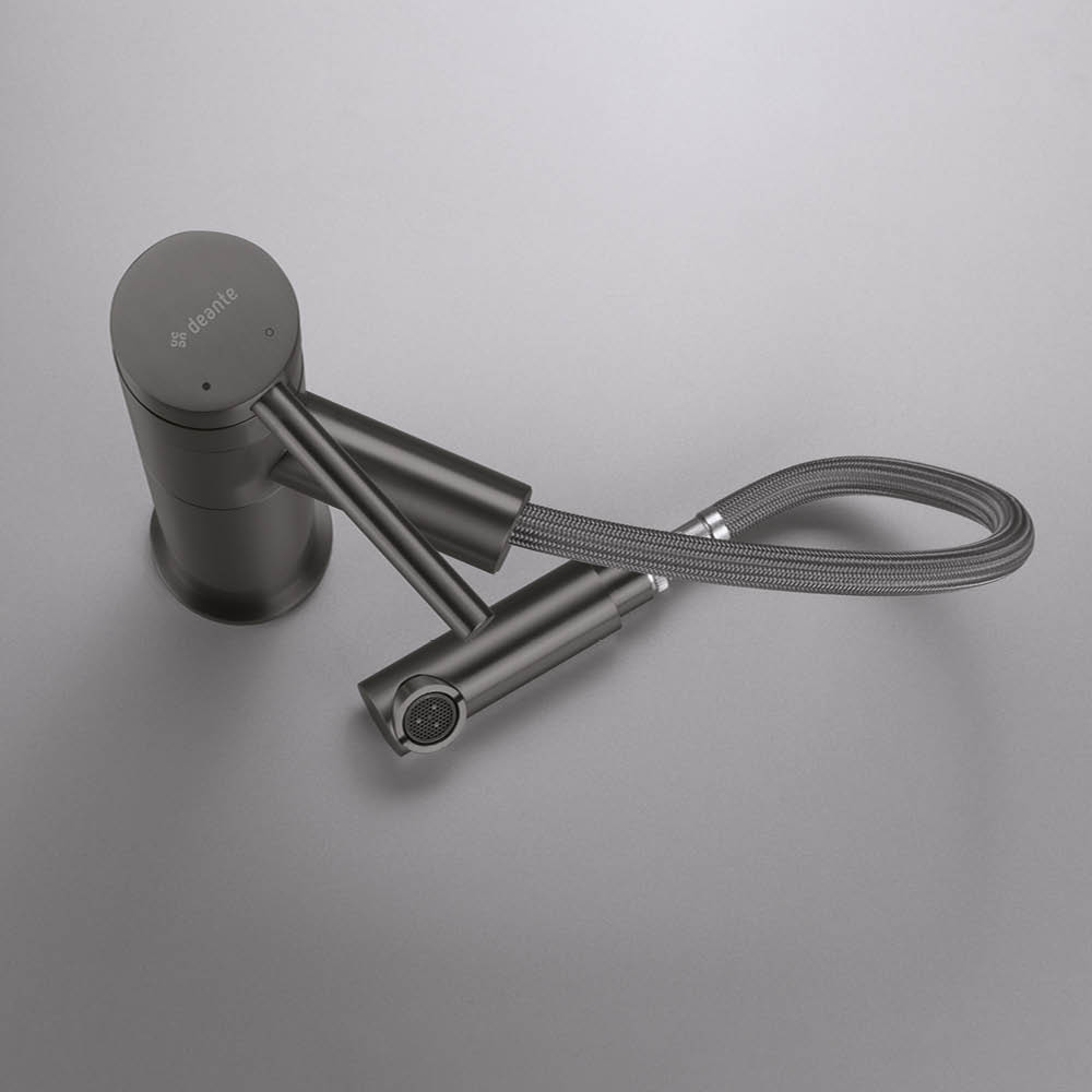 Grafitowostalowa powierzchnia armatury Deante TITANIUM jest efektem wykorzystania innowacyjnej technologii. Stanowi spektakularny kompromis między szarością, ciemnym grafitem, czernią, a nawet delikatnym odcieniem brązu - idealna ozdoba każdej aranżacji wnętrza. Struktura powierzchni jest trwała, łatwa w utrzymaniu w czystości i nie przyjmuje odcisków palców.