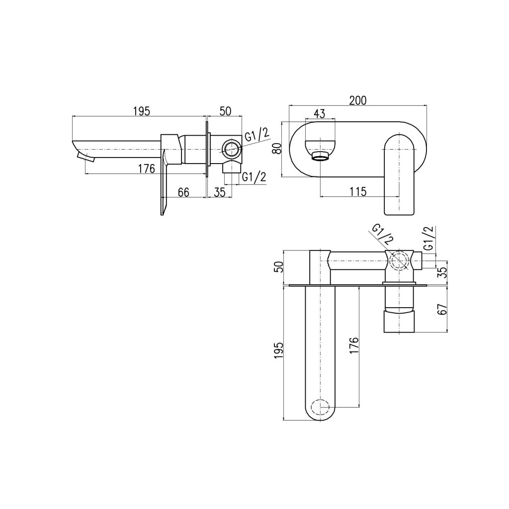 Umyvadlová baterie podomítková s tělesem NIL - NL135CMAT, Černá mat