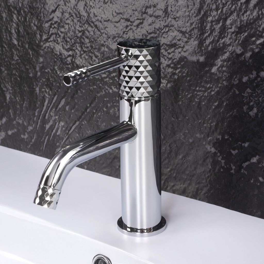 Krásný tvar baterie se dokonale hodí do každého interiéru koupelny a dekorace ve stylu diamantu jistě dodá zařízení šik a eleganci.