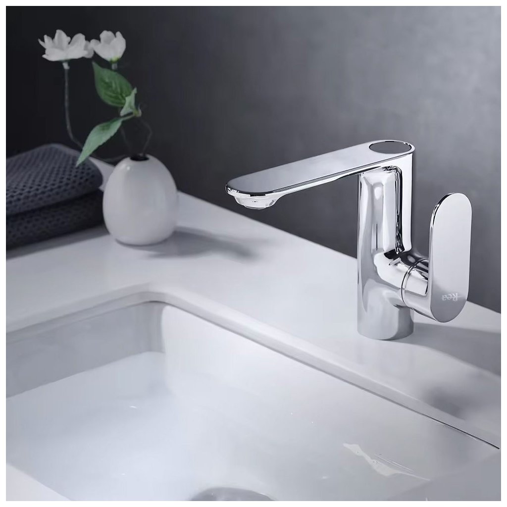 Moderní nízká umyvadlová baterie série Rea Mils je vyrobena z vysoce kvalitní mosazi s úpravou v chromovém provedení.