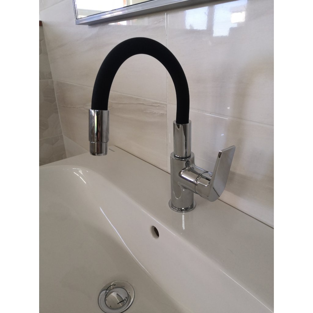 Vodovodní baterie umyvadlová stojánková s flexibilním otočným ramínkem.