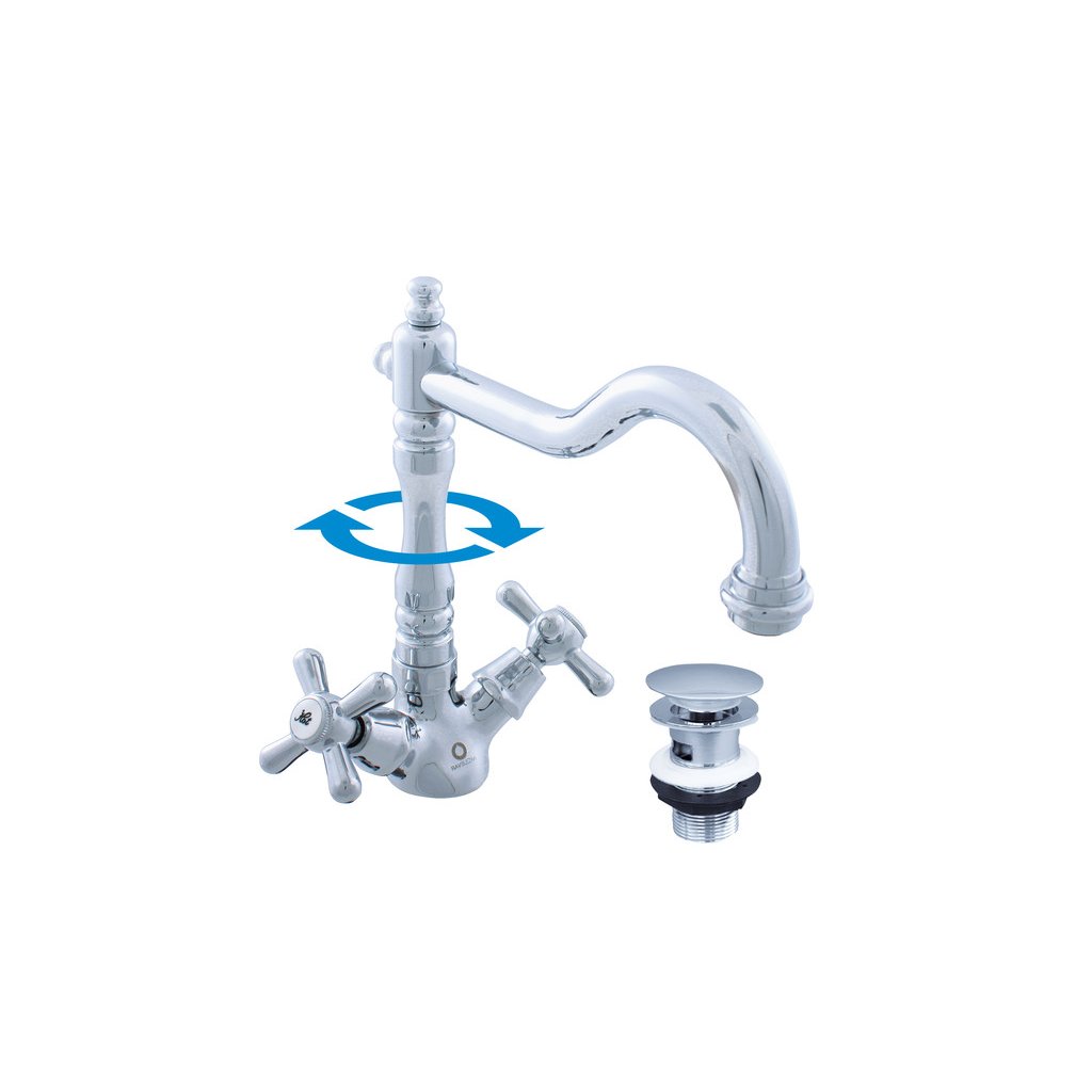 Vodovodní baterie umyvadlová stojánková s otočným ústím s výpustí CLICK-CLACK.