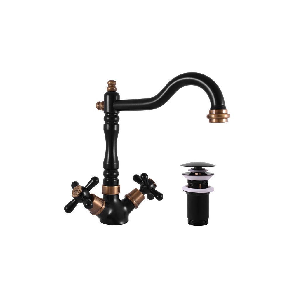 Umyvadlová baterie s výpustí MORAVA RETRO - MK121.x/8CMATSM, Černá mat/stará mosaz (Bronz)