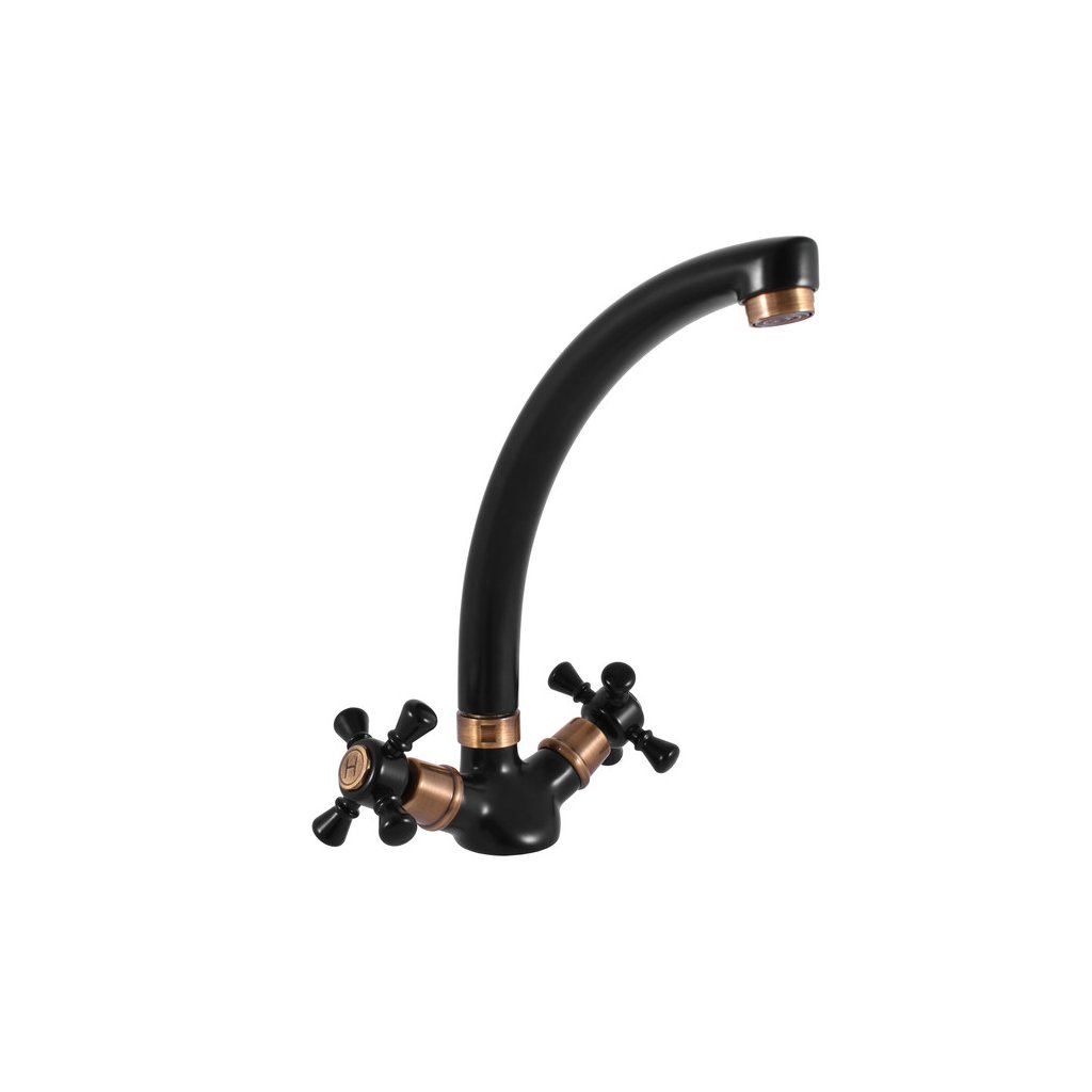 Umyvadlová/dřezová baterie bez výpusti MORAVA RETRO - MK320.x/3CMATSM, Černá mat/stará mosaz (Bronz)