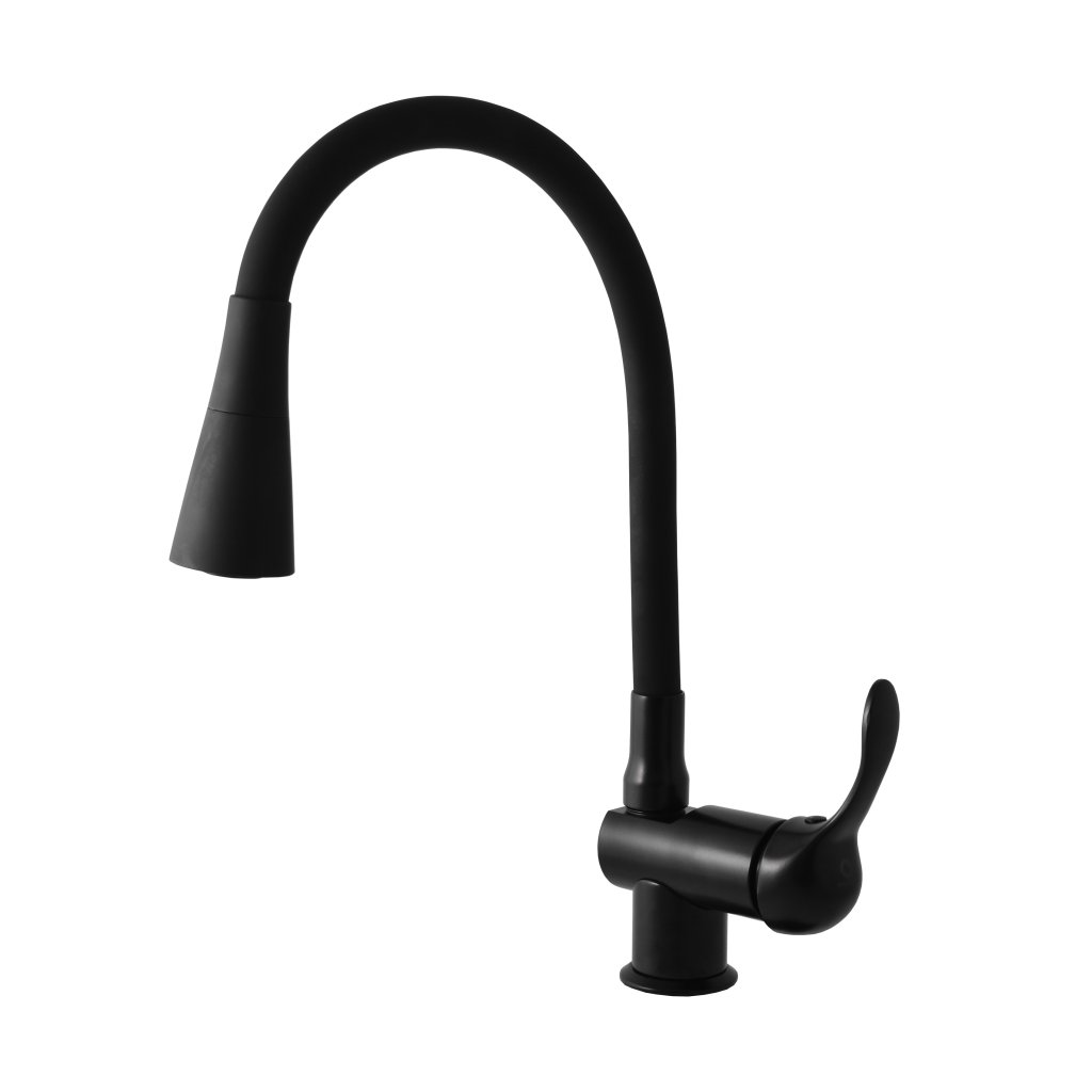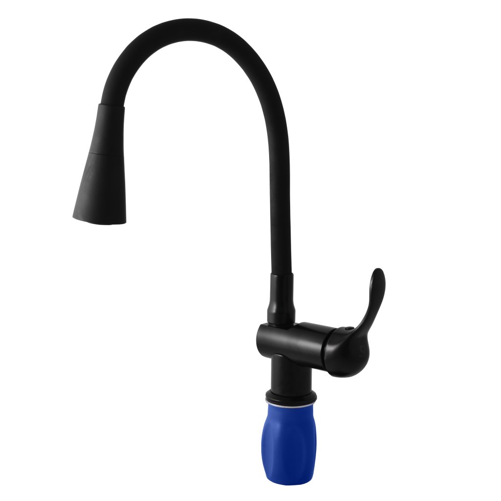Vodovodní baterie dřezová stojánková s flexibilním ramínkem se sprchou - černá matná.