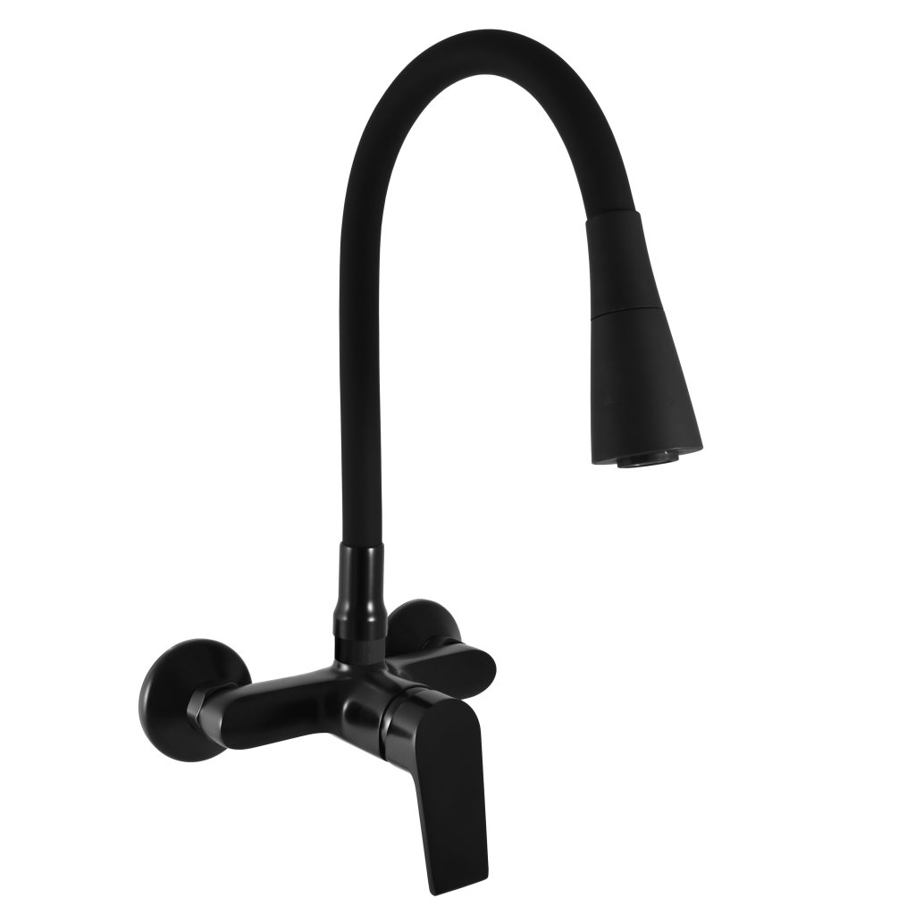 Vodovodní baterie dřezová nástěnná s flexibilním otočným ramínkem se sprchou.