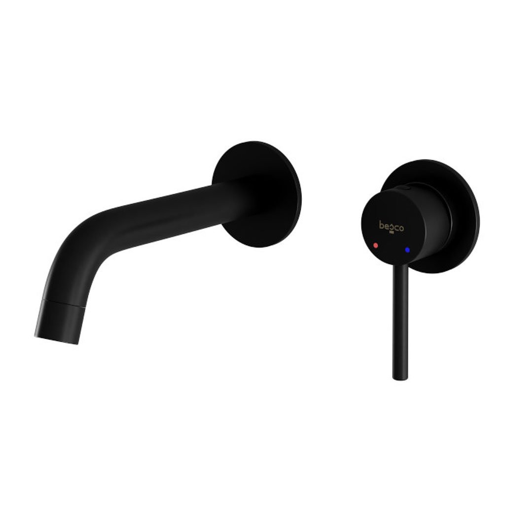 Umyvadlová podomítková baterie s pákovým ovládáním a pevným výtokovým ramínkem v povrchové úpravě černá mat. Součástí baterie je podomítkové těleso.
