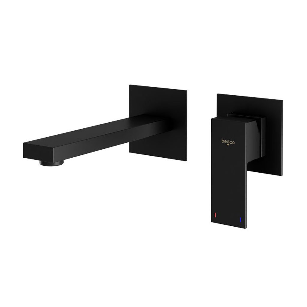 Umyvadlová podomítková baterie s pákovým ovládáním a pevným výtokovým ramínkem v povrchové úpravě černá mat. Součástí baterie je podomítkové těleso.