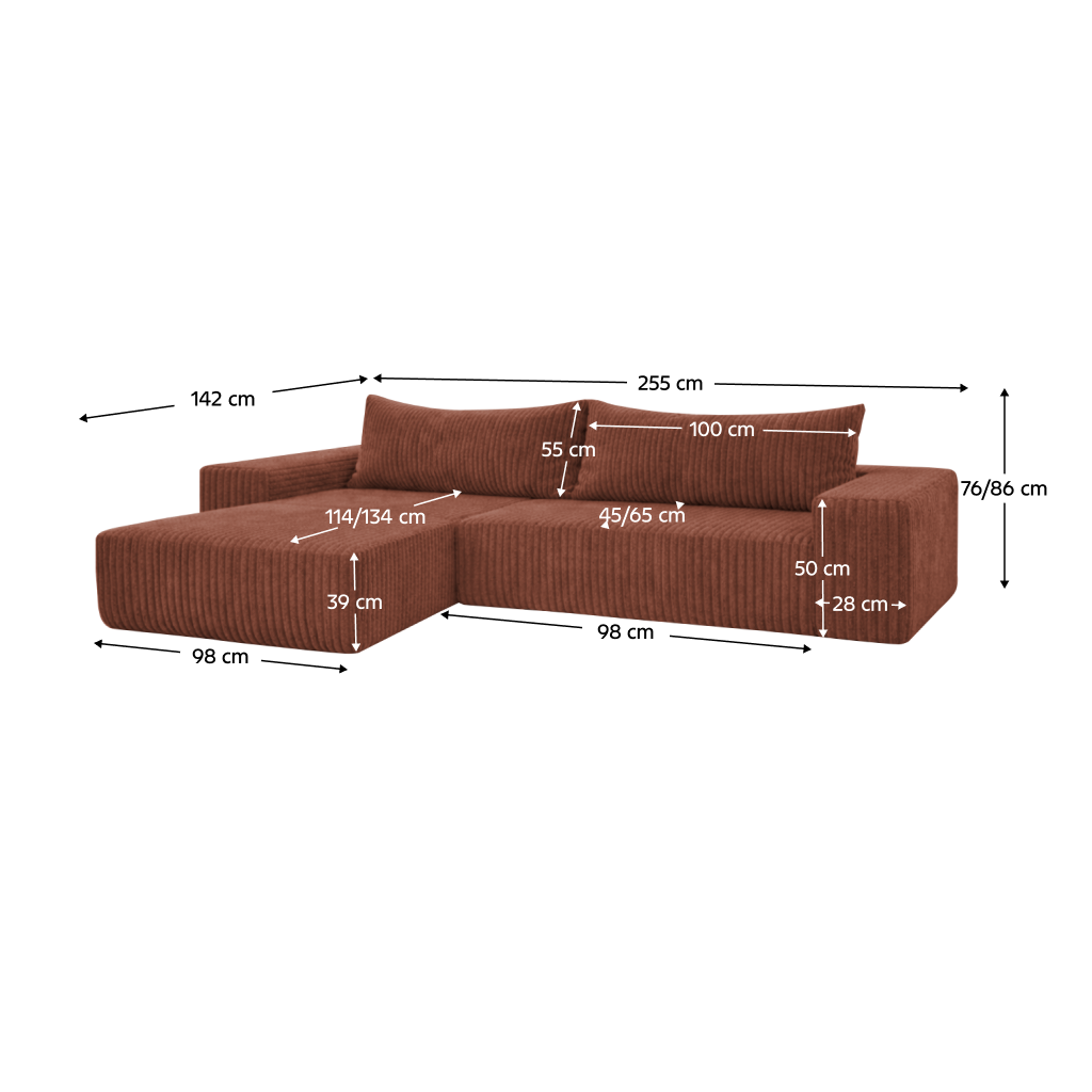 - Rozměry (ŠxHxV): 255x142x76/86 cm