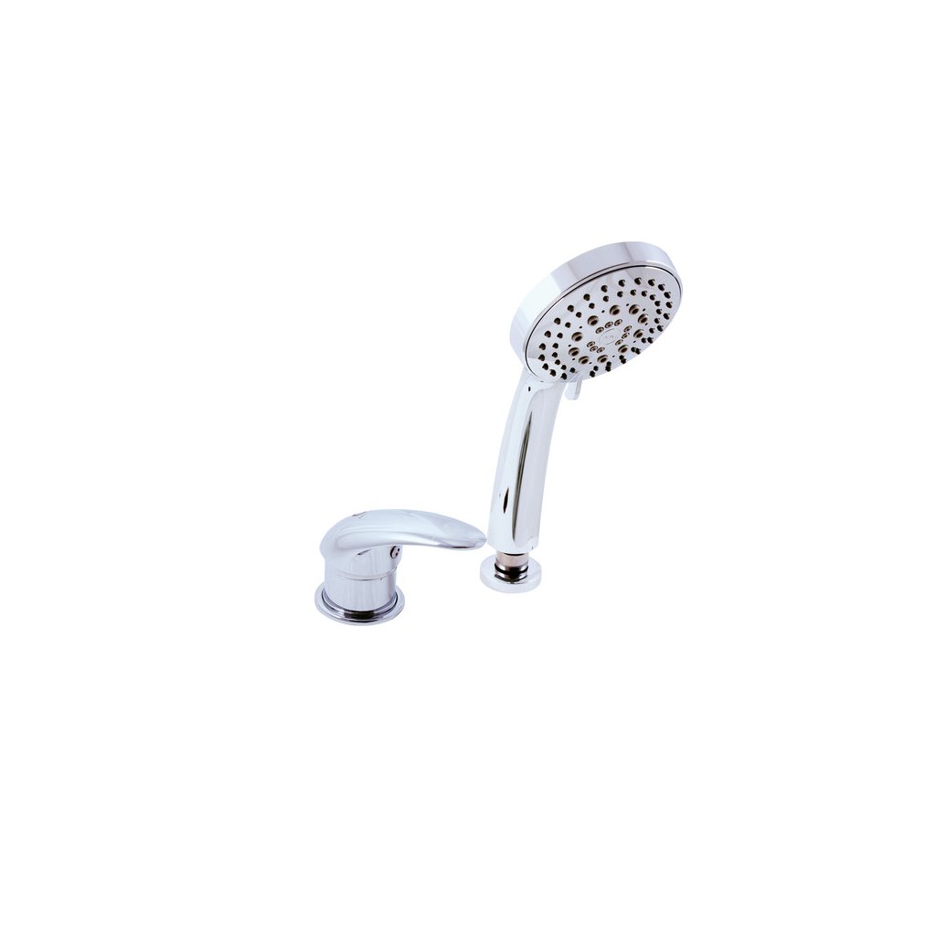 Vodovodní baterie vanová stojánková dvouotvorová s přepínačem v mixu, samonavíjecí sprchou a 2m hadicí, pro napouštění přes přepad sifonu.