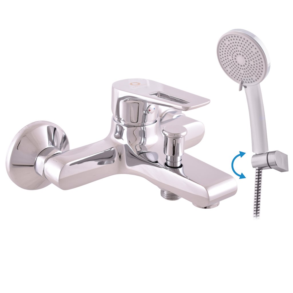 Vodovodní baterie vanová nástěnná se sprchou a otočným držákem.