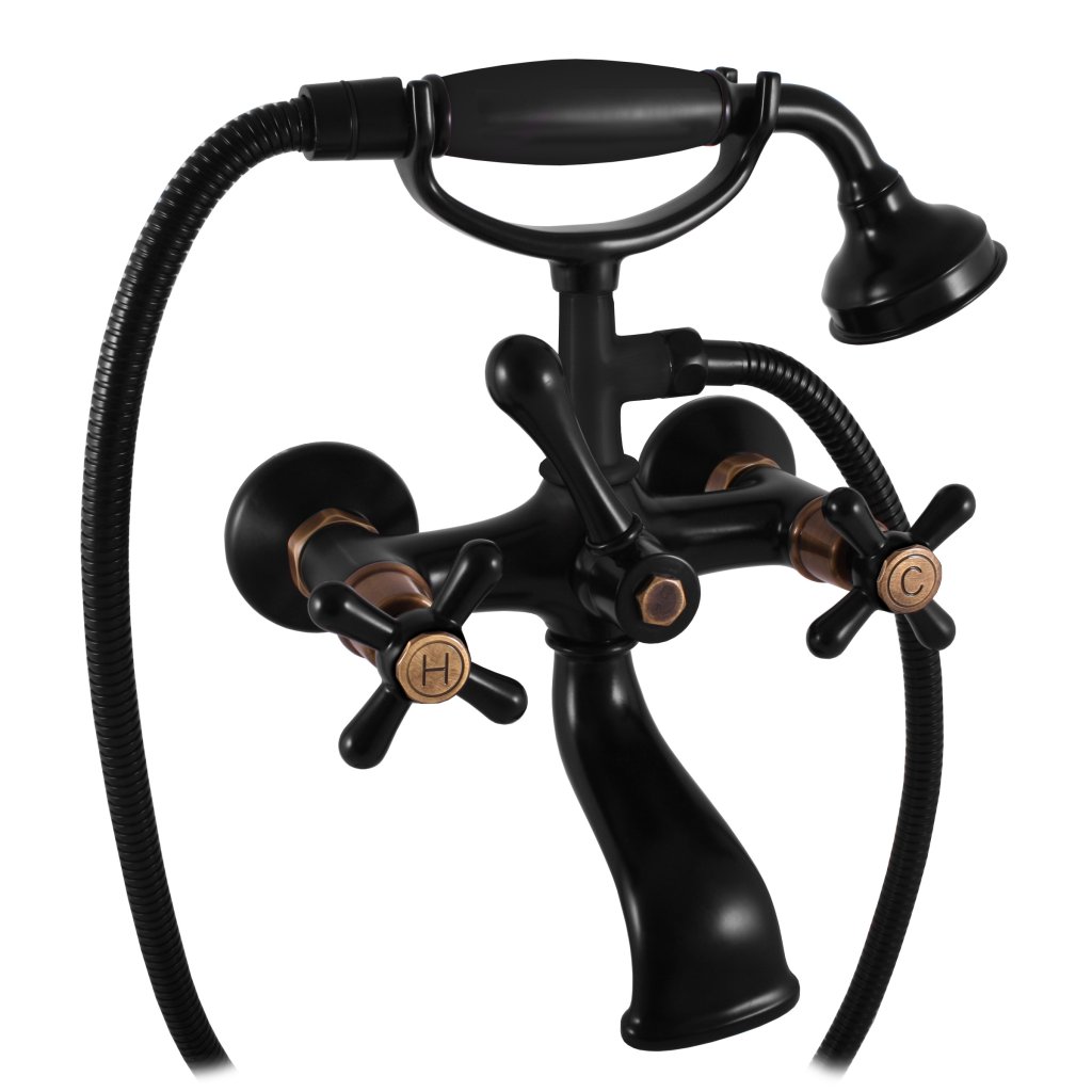 Vanová baterie MORAVA RETRO se sprchovým setem - MK159.5/2CMATSM, Černá mat/stará mosaz (Bronz)