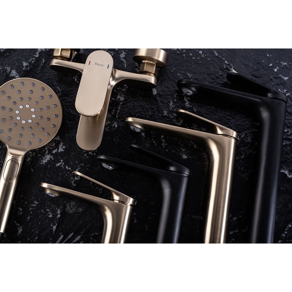 Dovolte nám představit moderní, neobyčejně funkční a stylovou vanovou baterii REA MARCO v módní černé barvě v matném provedení. Tato baterie se bude perfektně hodit do Vaší koupelny, v níž současně zachová bezúhonný vzhled i estetiku interiéru. Baterie je určena k montáži na zeď a její korpus je vyroben z kvalitní mosazi, pokryté trojitým povlakem, a speciální fáze, jež byla použita při výrobě této baterie, zajišťuje snadné čištění a vysokou odolnost. Tento konkrétní model vanové baterie z oblíbené série Rea Marco byl zhotoven s úpravou v matném černém provedení.Doplňkové parametry