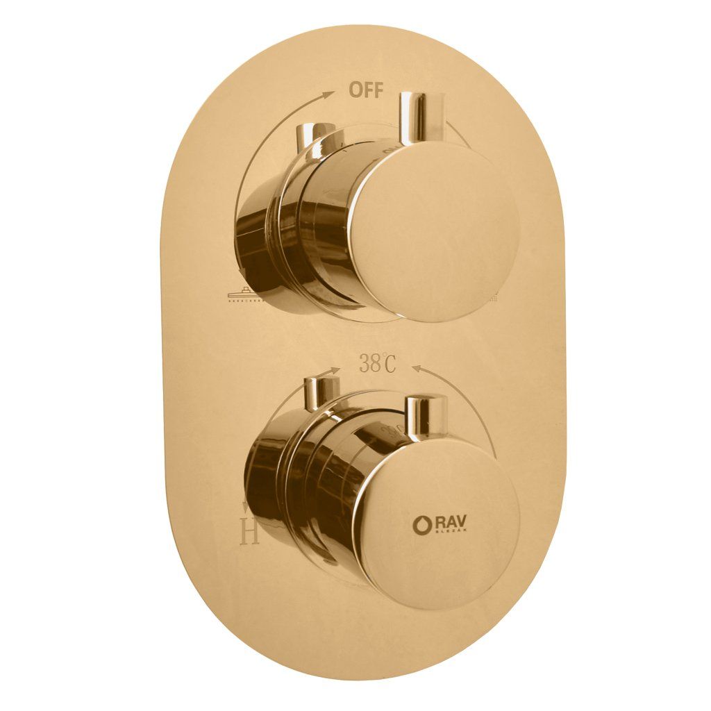 Vanová/sprchová baterie 2-cestná s podomítkovým tělesem TERMOSTATICKÁ - TRM86ZK, Zlatá kartáčovaná