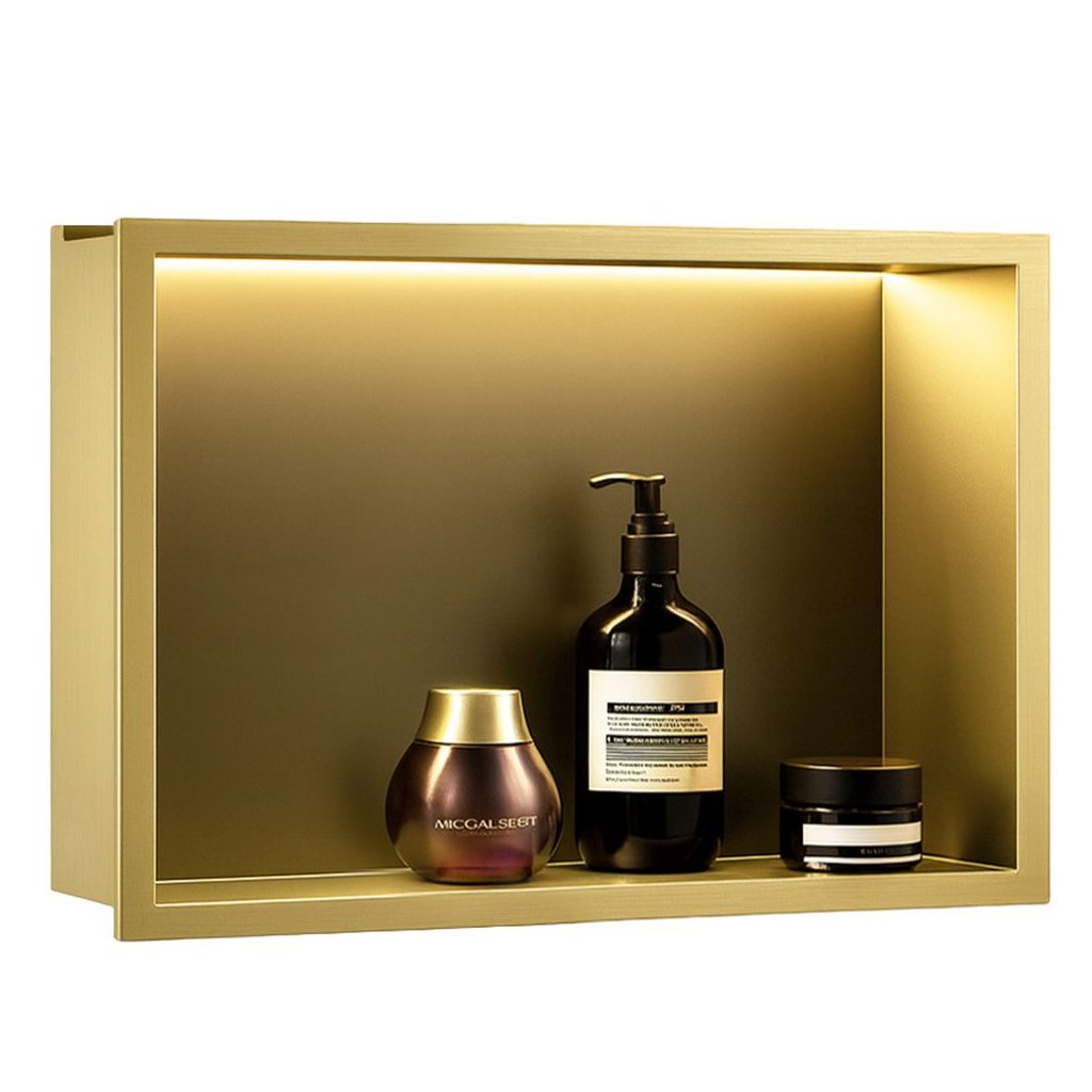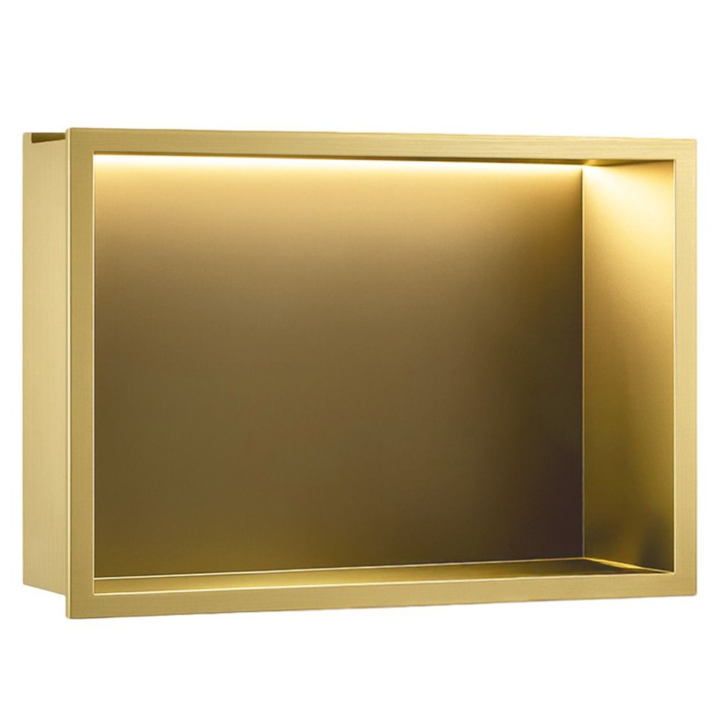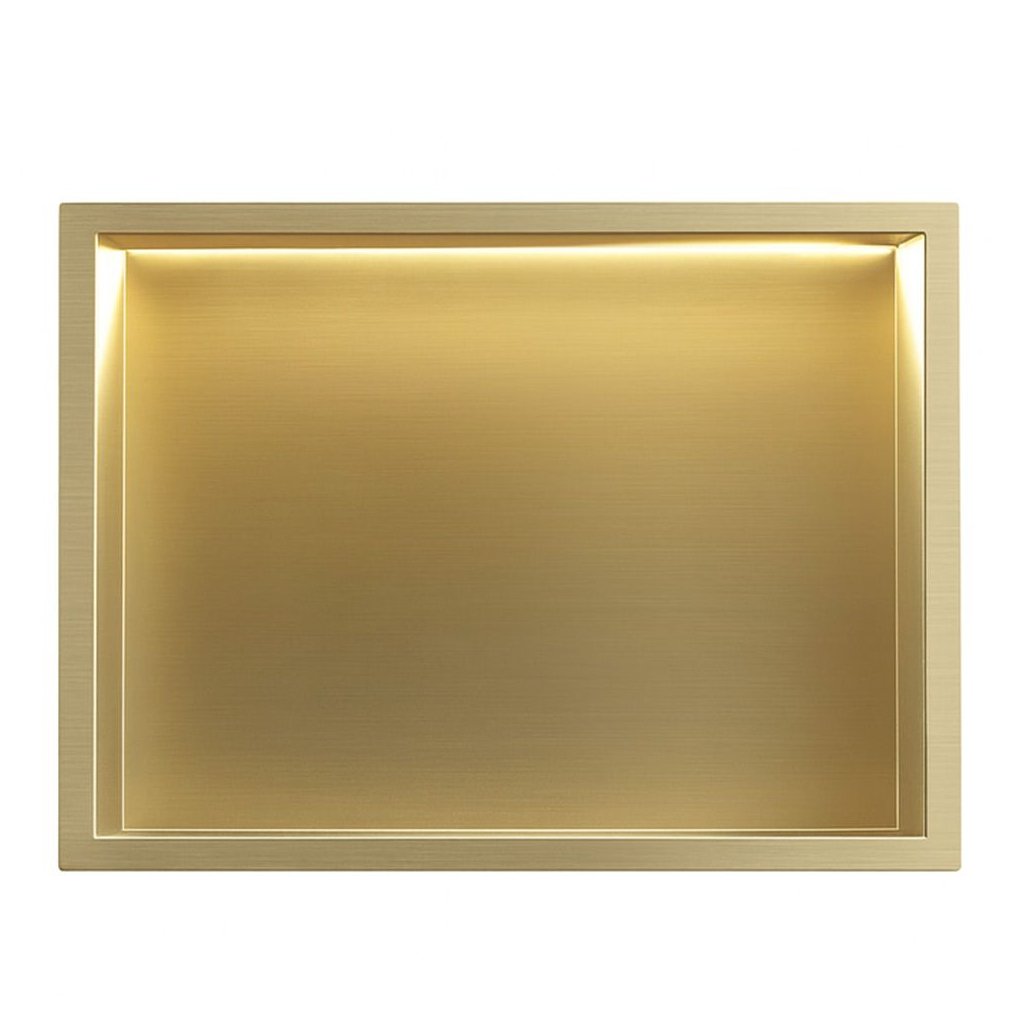 Vestavná koupelnová police s LED osvětlením 45x30 cm, kartáčovaná zlatá