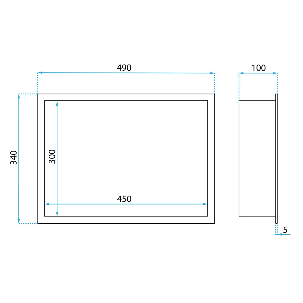 - Rozměry: šířka 450 mm, výška 300 mm, hloubka 100 mm