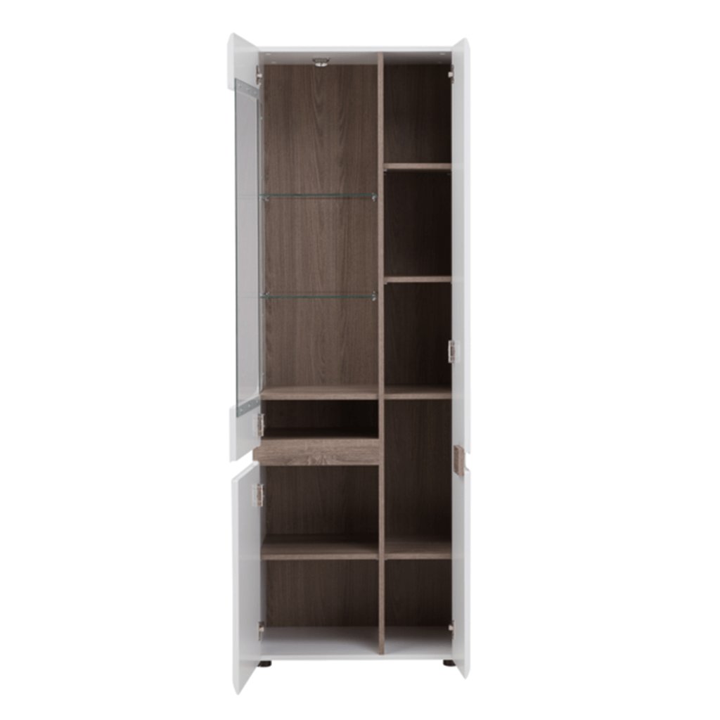 Vitrína, bílá extra vysoký lesk HG / dub sonoma tmavý, levá, LYNATET TYP 01