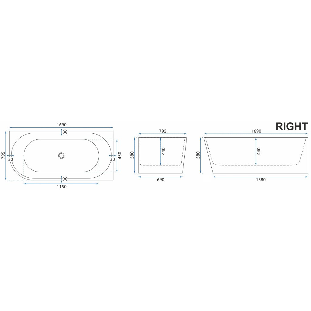 Asymetrická akrylátová rohová vana s krycím panelem REA SYDNEY BELLANTO Pravá 170x80 cm, bílá