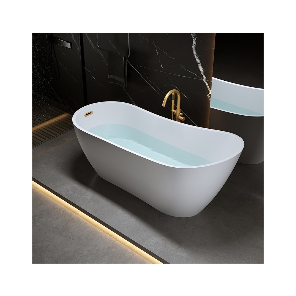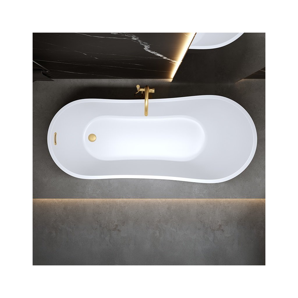 Volně stojící akrylátová vana HYD-FOR520B 160x75 bílá, odtokový komplet zlatý kartáčovaný